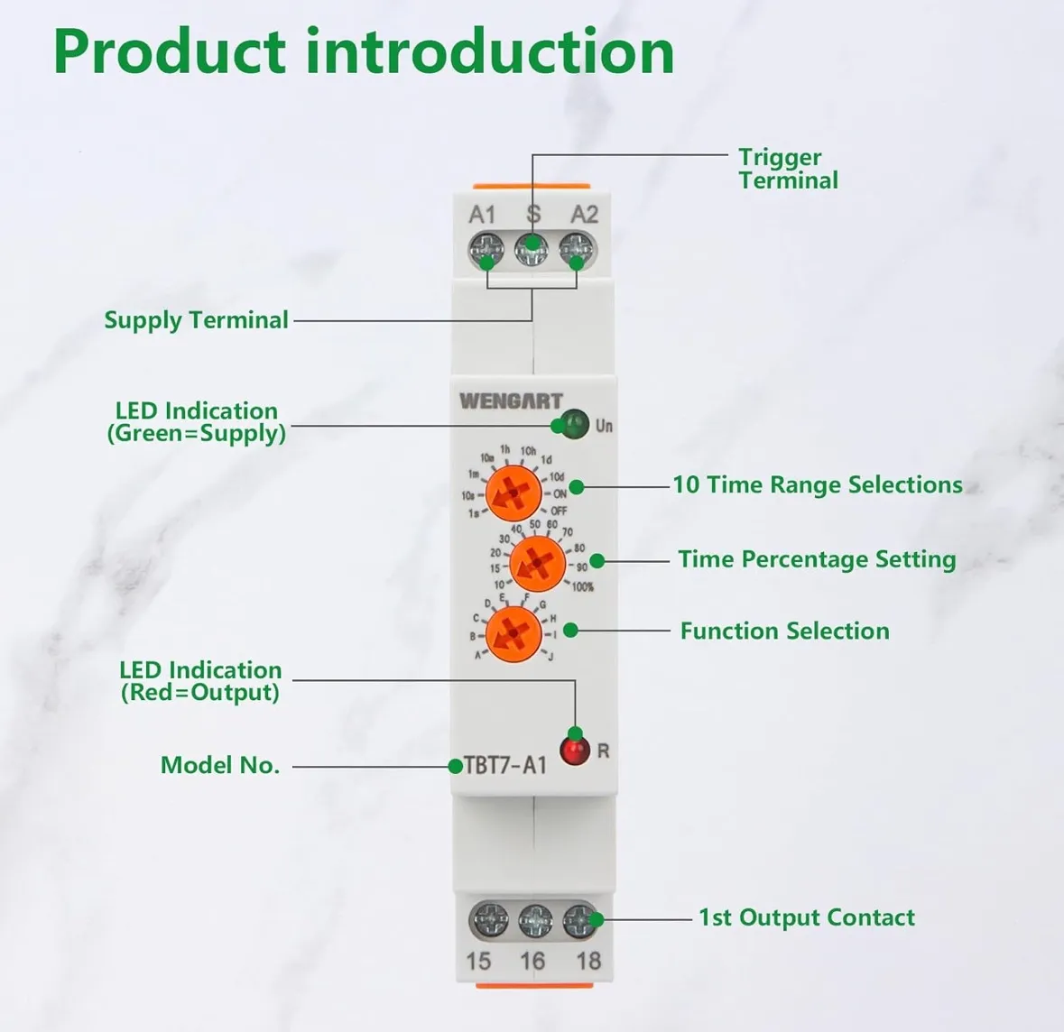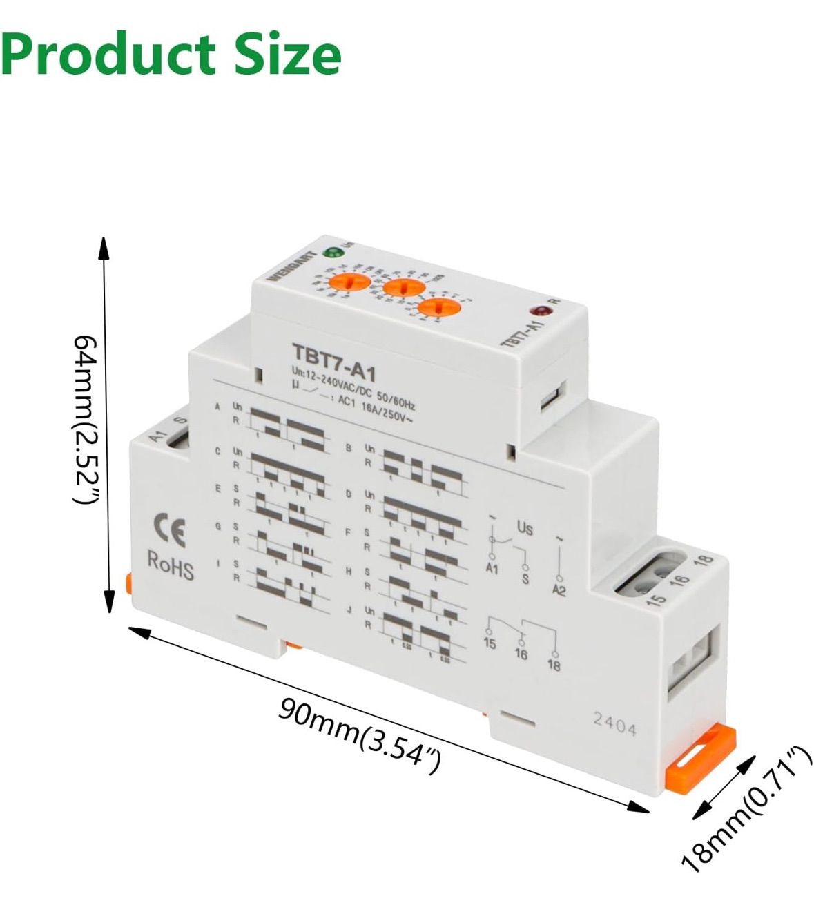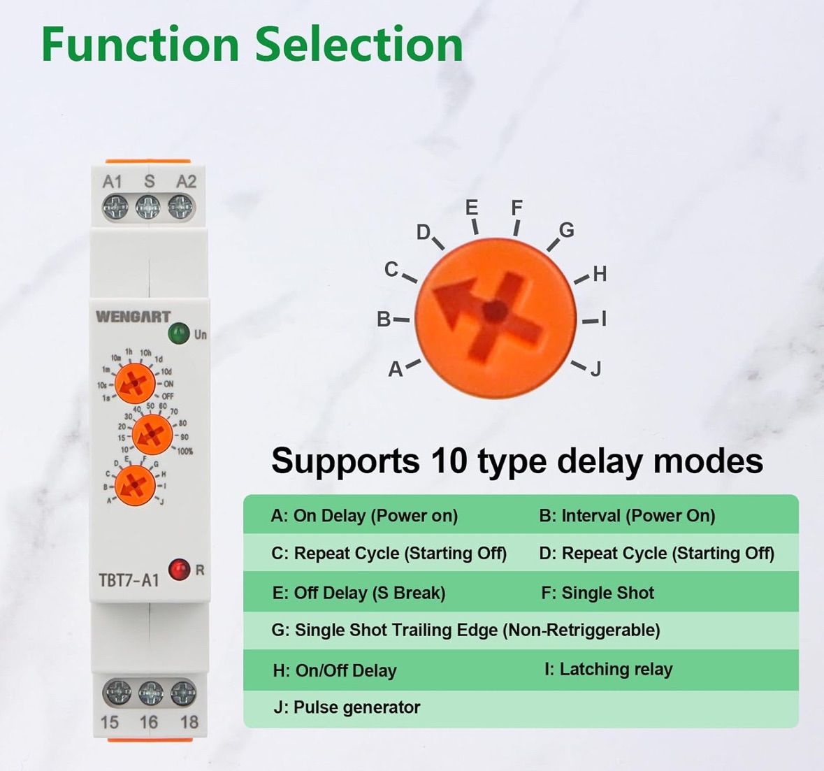 遅延時間リレー TBT7-A、10 機能時間リレー、LED インジケータ付き、ACDC12-240V、さまざまな遅延制御機能を必要とする場合に適しています (TBT7-A1)