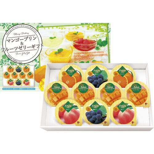 トロピカルな味わいと喉ごしのよいなめらかなマンゴープリンと、みずみずしくぷるるんとした食感がお口いっぱいに広がるゼリーの詰合せです。