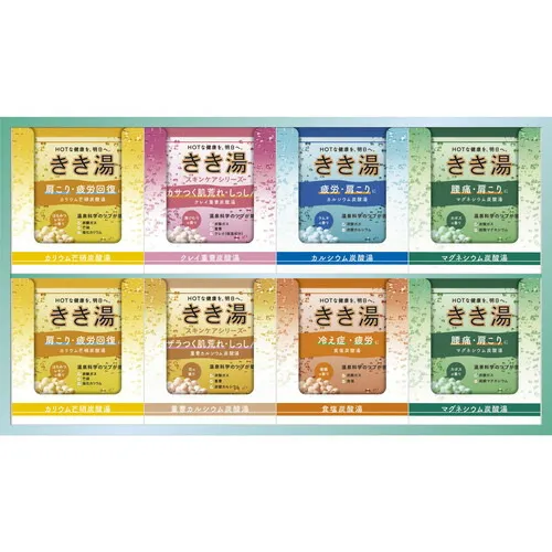 ■入浴剤きき湯(マグネシウム炭酸湯×4・カリウム芒硝炭酸湯×4・クレイ重曹炭酸湯×2・食塩炭酸湯×2・重曹カルシウム炭酸湯×2・カルシウム炭酸湯×2)各30g