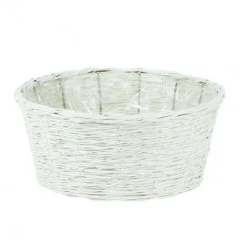 ポリエチレン製テープをねじって編んだバスケット。天然素材のような雰囲気もありながら、耐水性も持ちあわせています。
