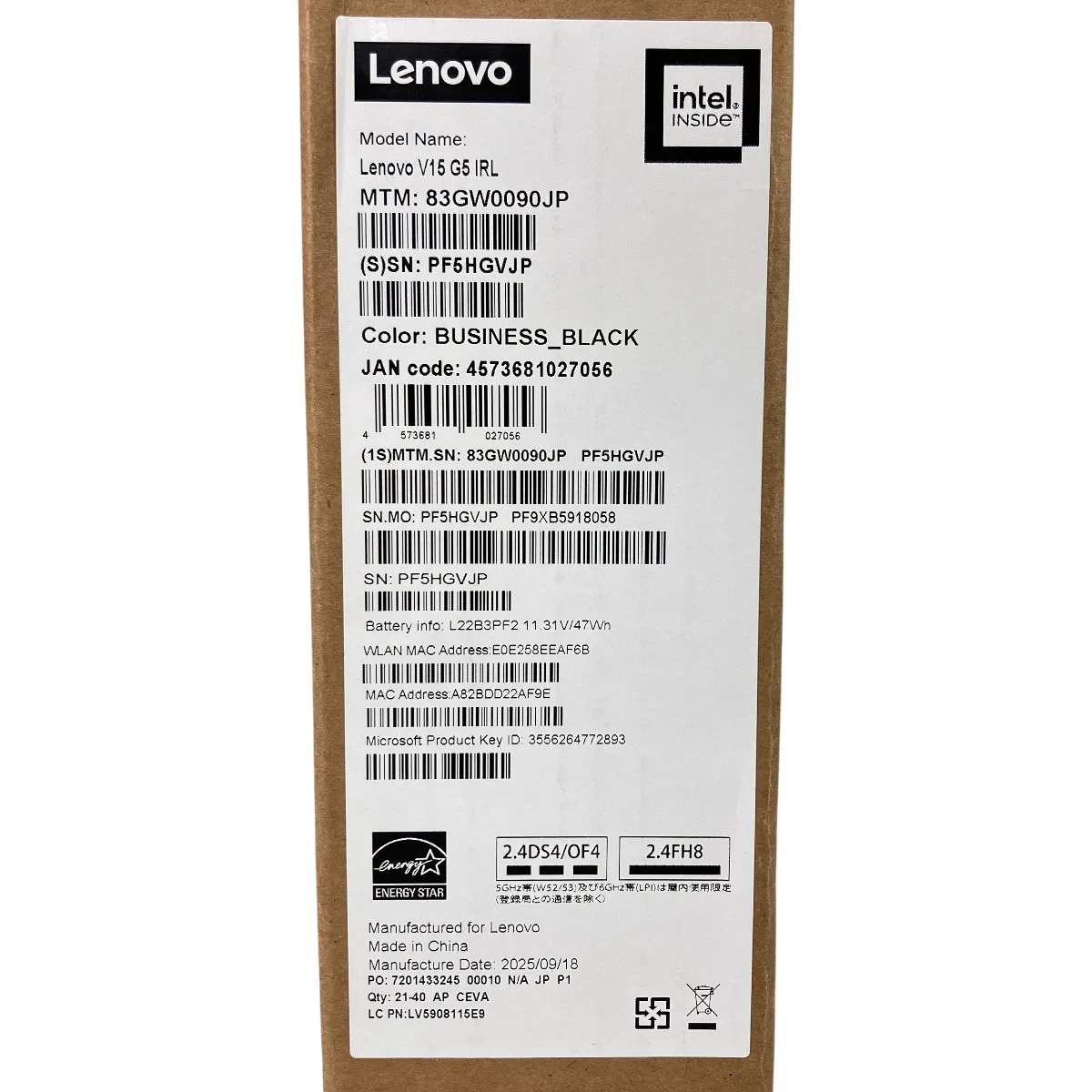 こちらは「Lenovo 83GW0090JP V15 Gen5 15.6型 Windows 11 Home 64bit Core i5-13420H 16GB SSD 256GB ノートパソコン 未使用 」でございます。