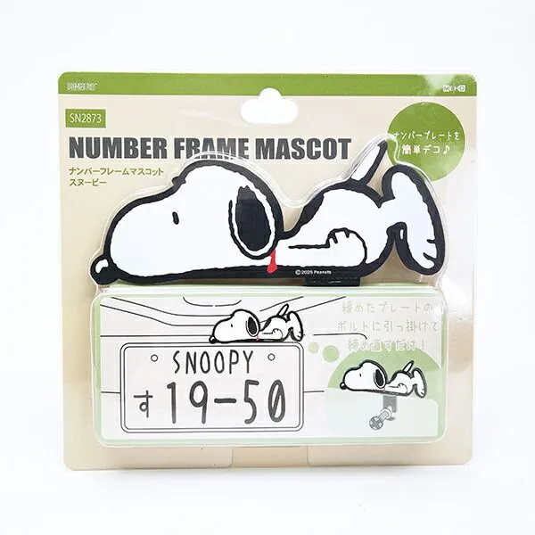 スヌーピーのナンバーフレームマスコットです。車のナンバープレートを簡単に可愛くデコレーションできちゃいます♪スヌーピー好きにはたまりません☆ぜひ車をスヌーピーで可愛くしちゃいましょう♪♪