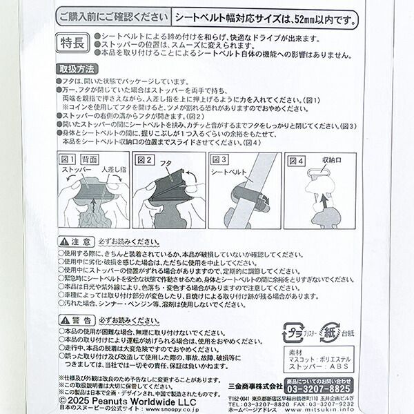スヌーピー サガラ刺繍シートベルトストッパー カー用品