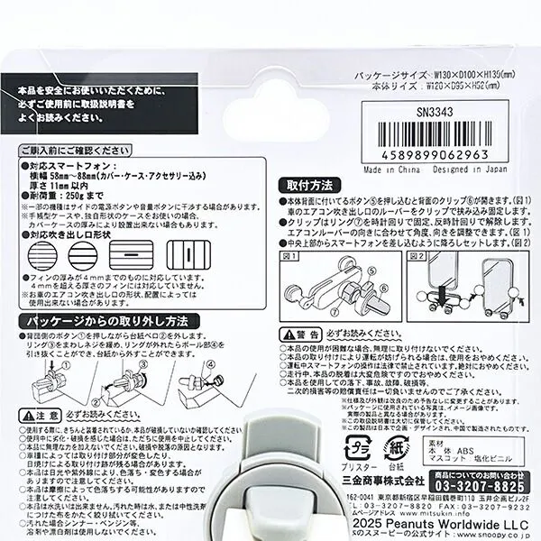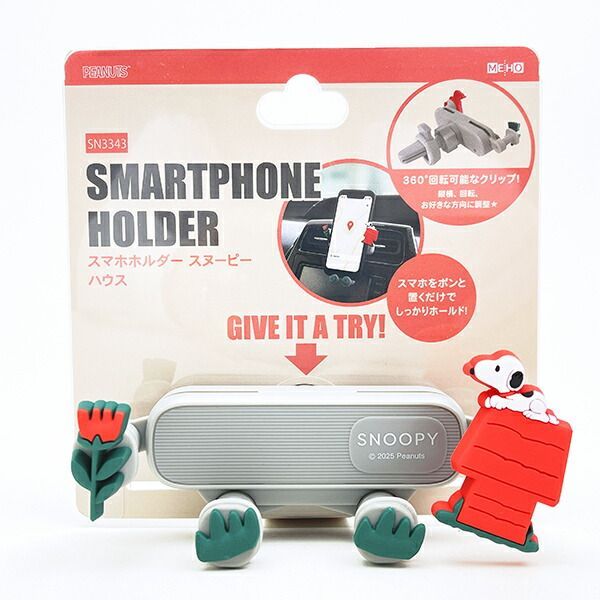 スヌーピーのスマホホルダーです。360°回転可能なクリップで縦横、回転、お好きな方向に調整できます☆スマホをポンっと置くだけでしっかりホールド♪ぜひ車をスヌーピーで可愛くしちゃいましょう♪♪