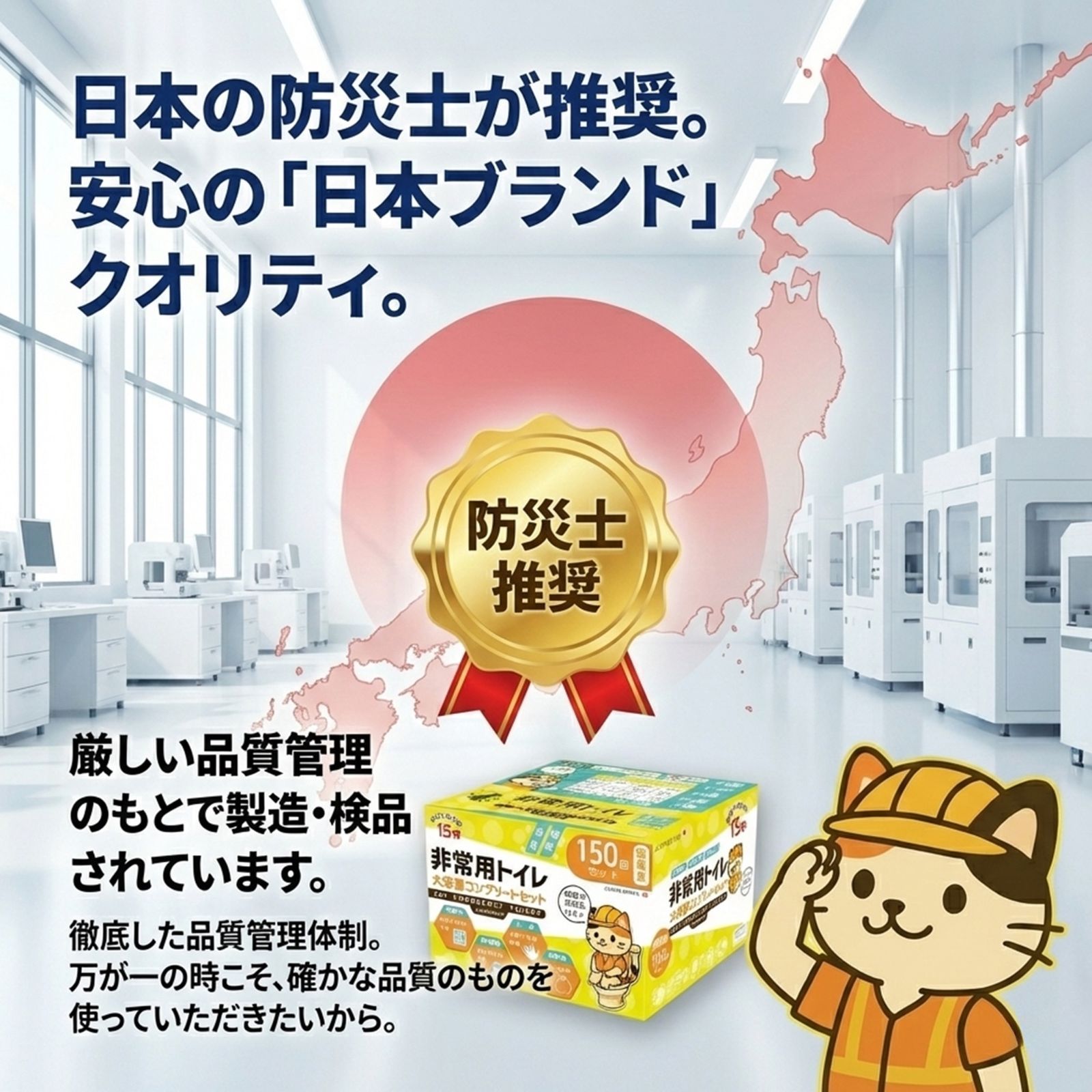 徹底した品質管理体制のもとで製造・検品されています。万が一の時に使うものだからこそ、確かな品質の「日本ブランド」をお選びください。