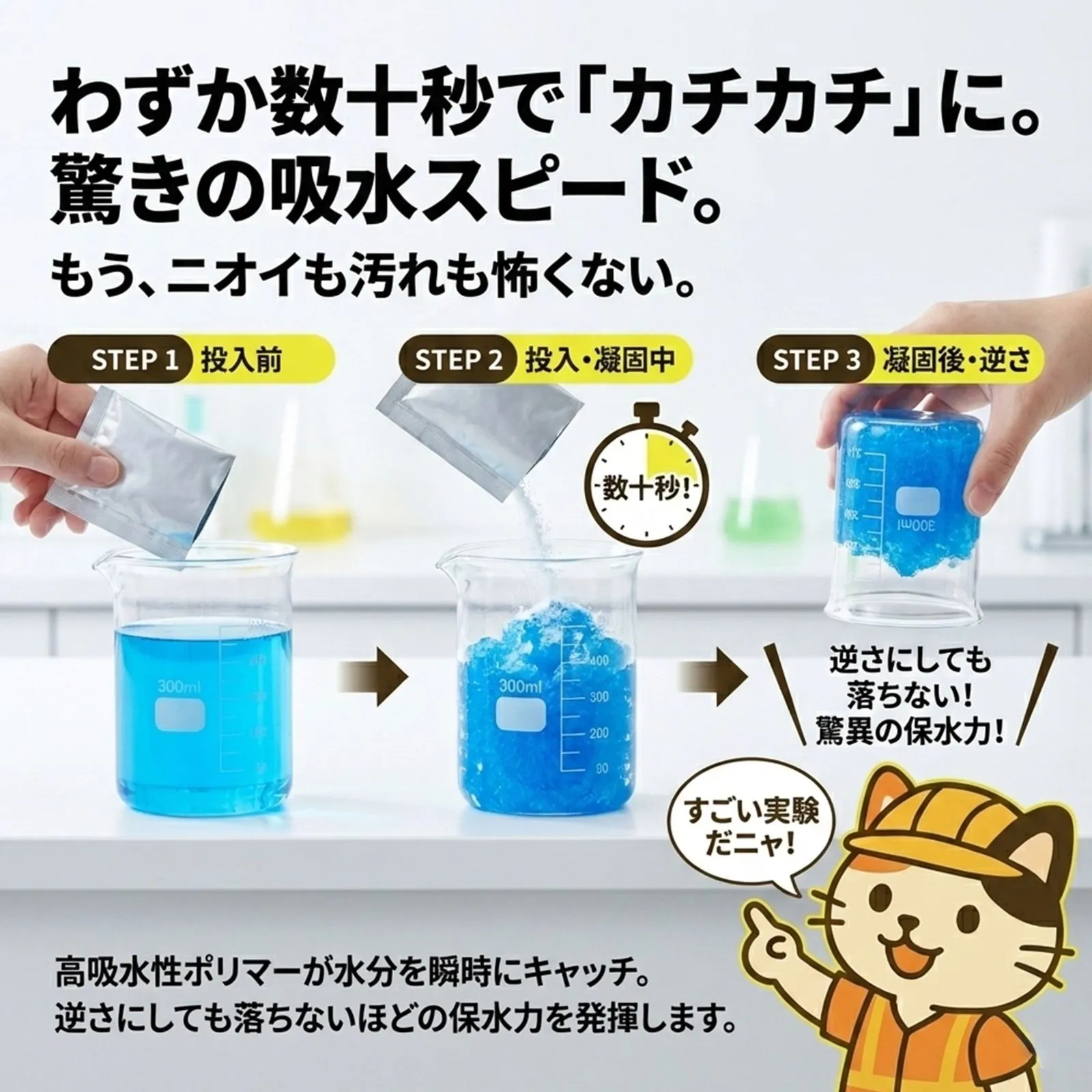 【3】 わずか数十秒でカチカチ!驚きの吸水・保水力