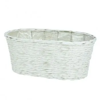 ポリエチレン製テープをねじって編んだバスケット。天然素材のような雰囲気もありながら、耐水性も持ちあわせています。