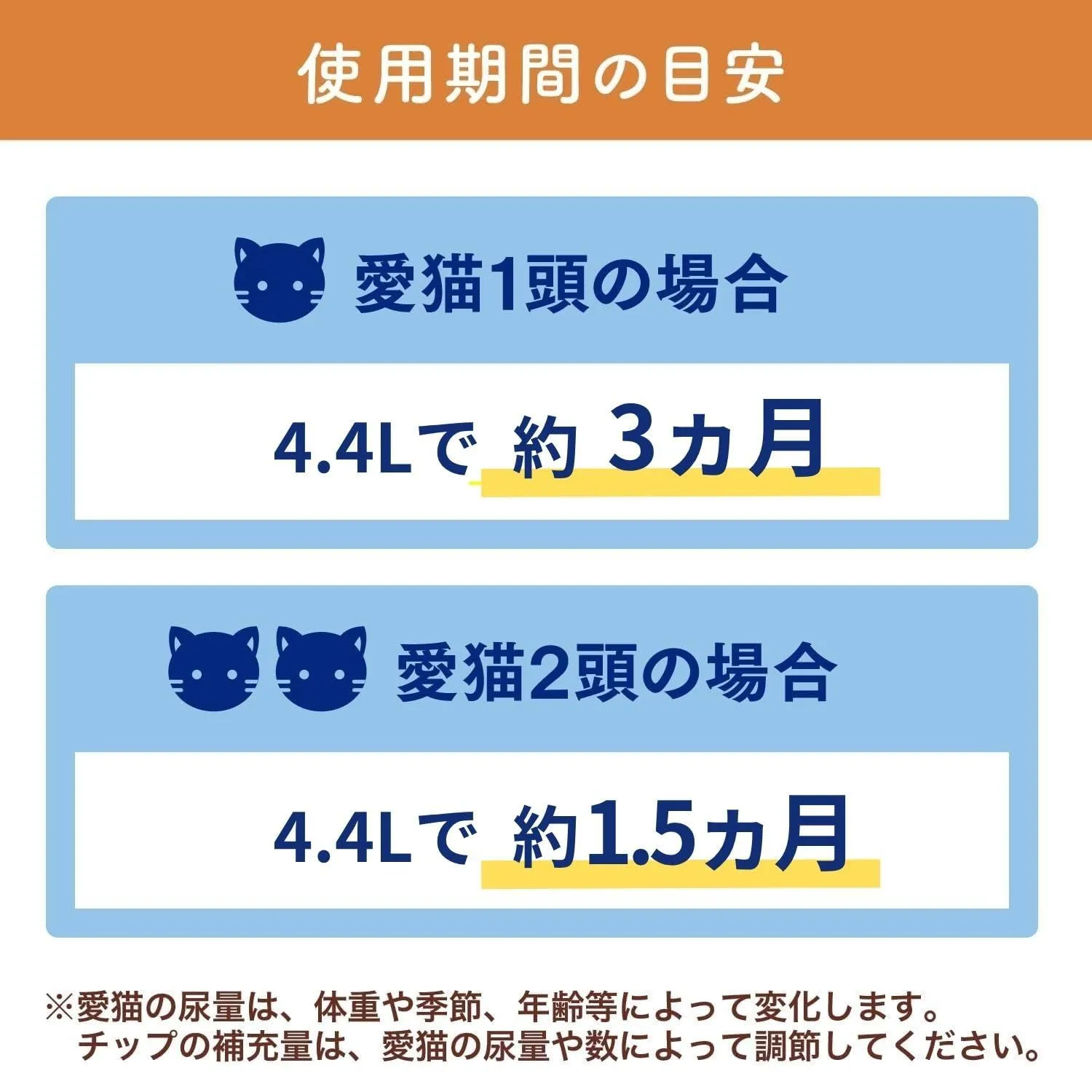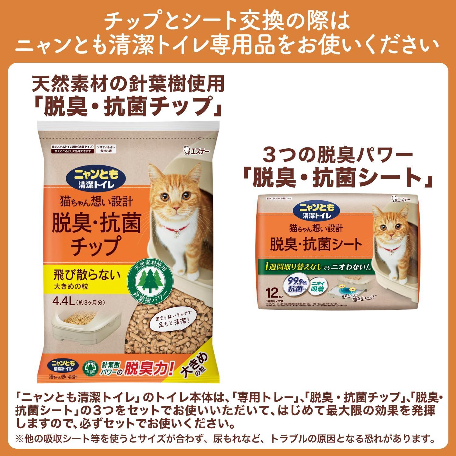 ニャンとも清潔トイレ 猫砂 [天然素材でパワフルに脱臭] 脱臭・抗菌チップ 大きめの粒 4.4L システムトイレ 猫用 消臭 ネコ砂