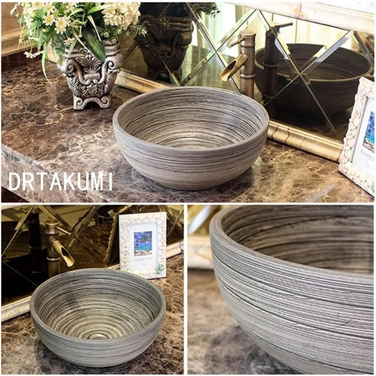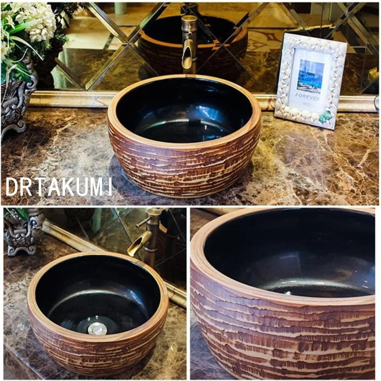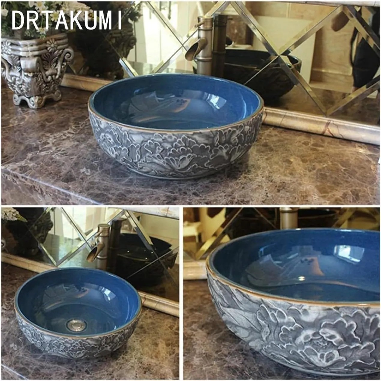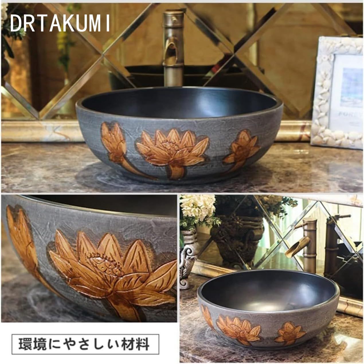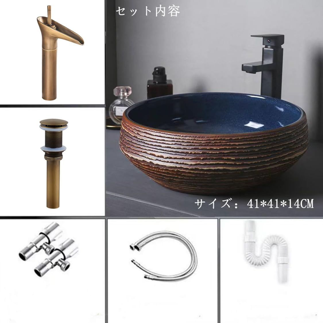 【排水セット付き】 洗面ボウル 陶器 豪華 手洗器 置き型 洗面器 深型 洗面台 蛇口付き (JP8-14)