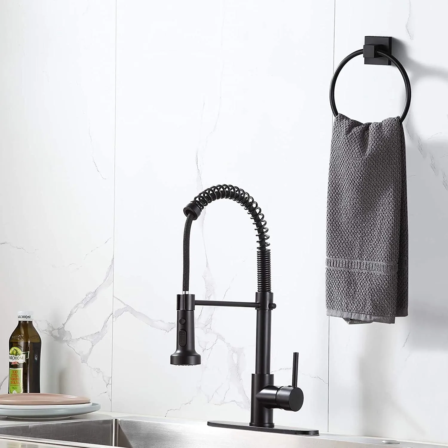 YUET 壁掛けタオルリングレールバー バスホルダー ハンガーアクセサリー SUS 304ステンレススチール クロムメッキ バスルームハードウェアとキッチン(マットブラック)
