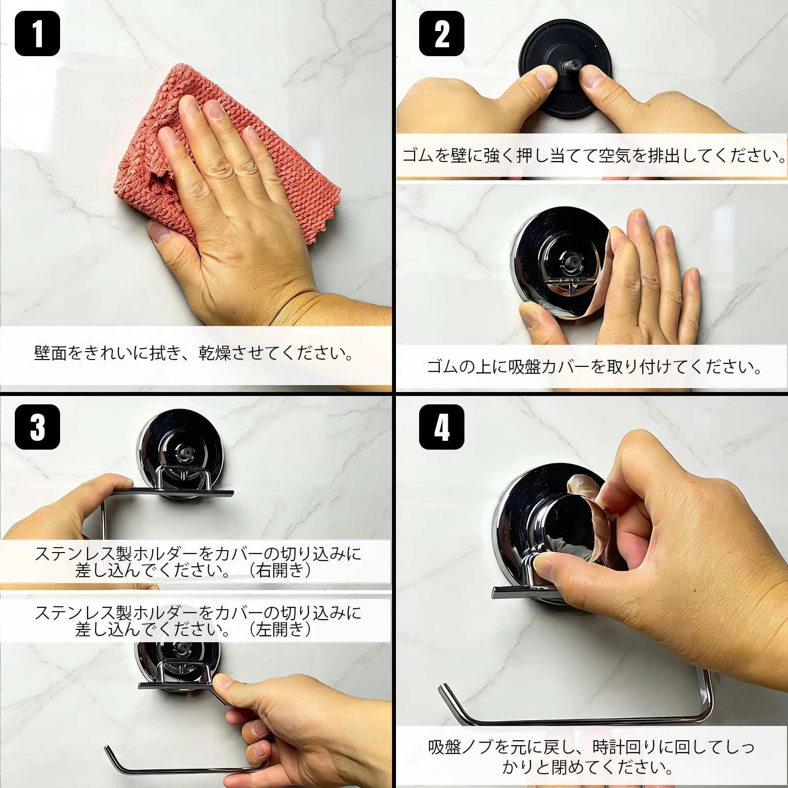 【穴あけ不要】吸盤式 トイレットペーパーホルダー ステンレス製|強力吸盤で5kg耐荷重・賃貸OK・取り外し可能・浴室・トイレ対応
