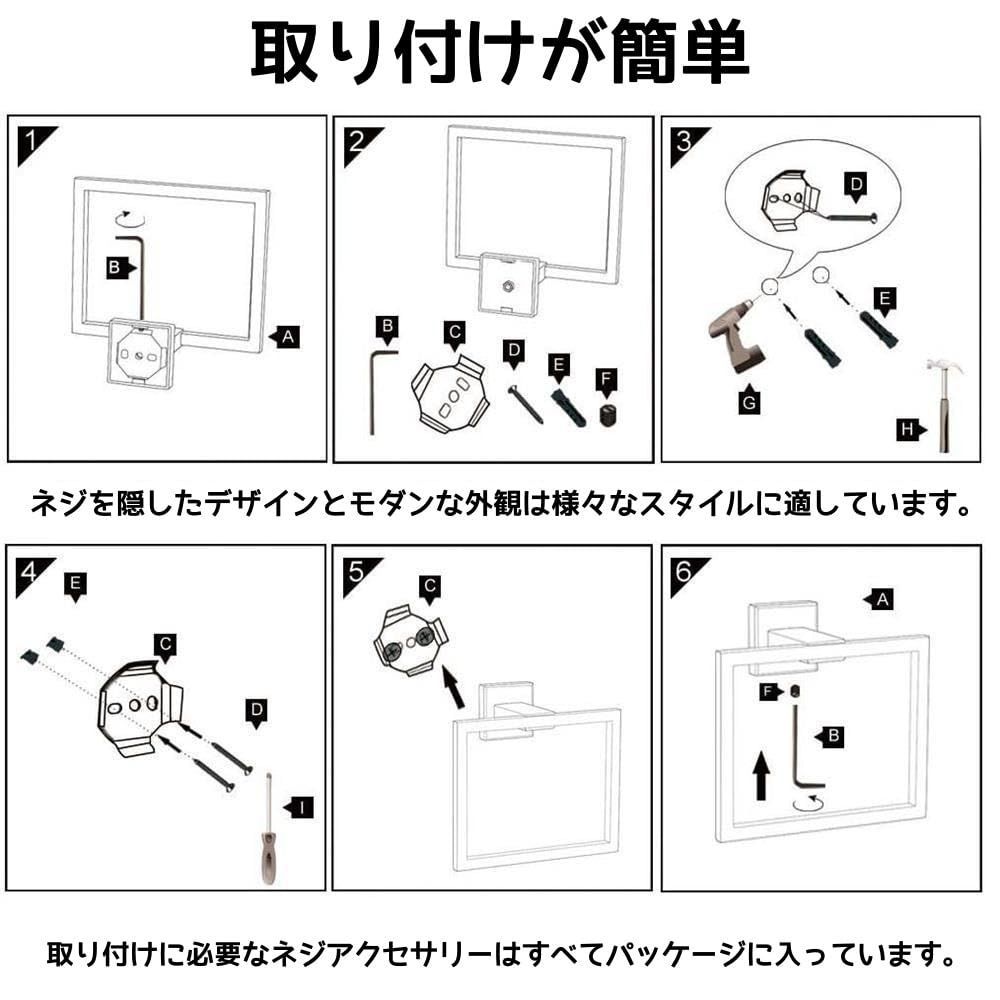【取り付け簡単--取り付け説明書と金具が付属している】タオルラックと取り付けアクセサリのセットが含まれており、タオルラックを素早く簡単に取り付けることができます。隠された設置と取付の金具で簡単にインストールでき、金具はしっかりと取り付けると隠れます。