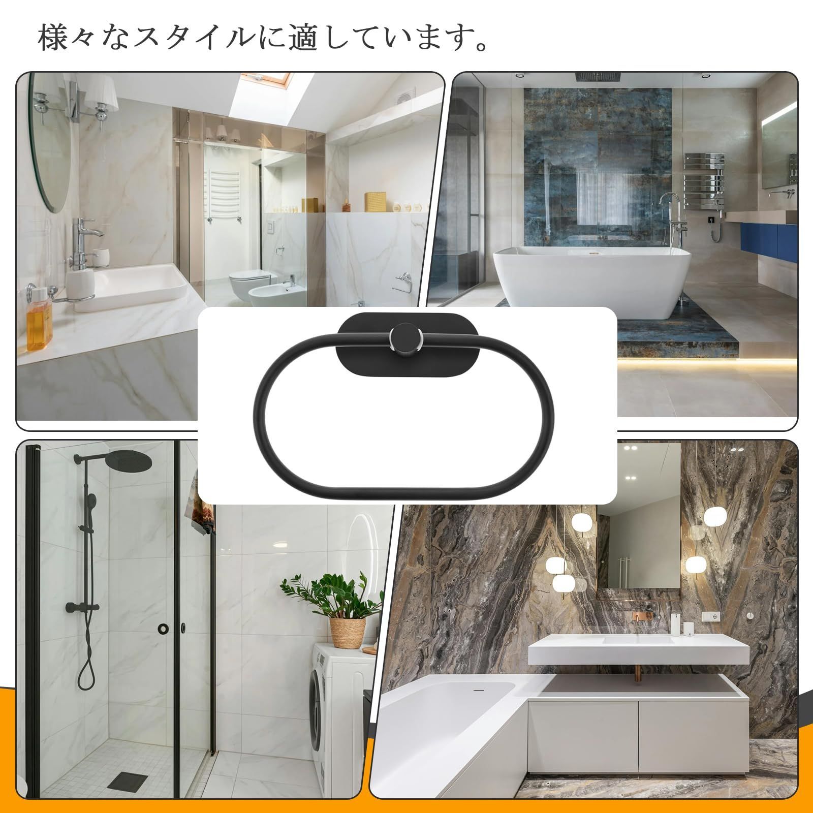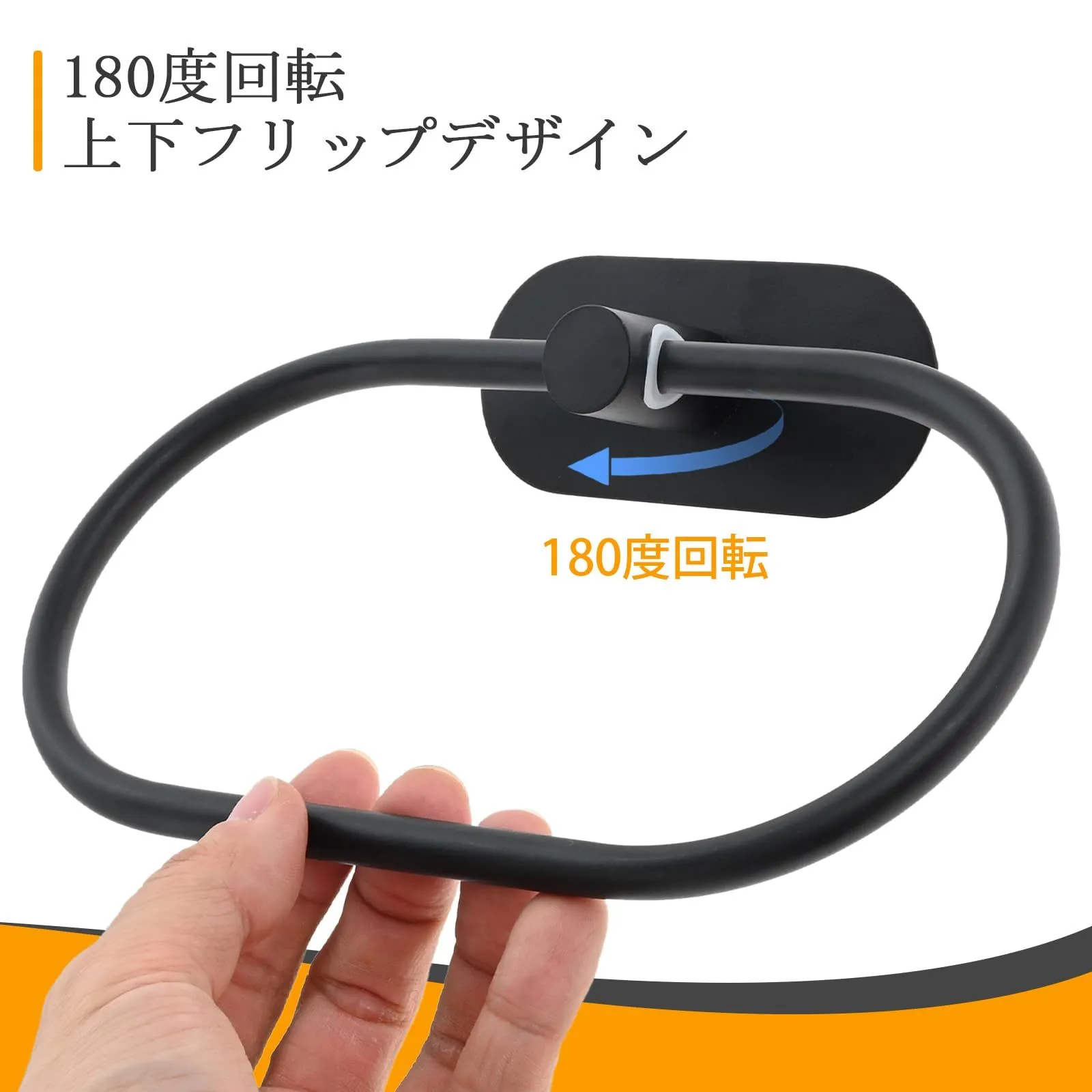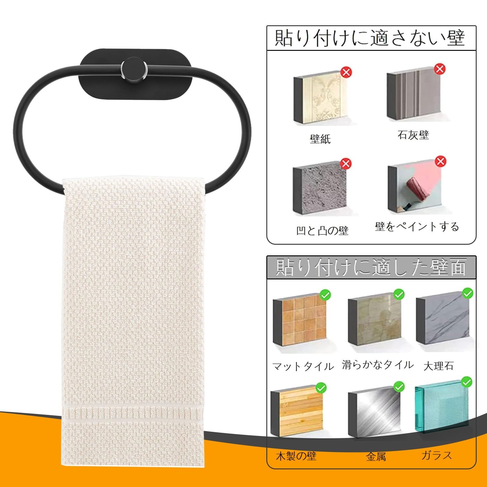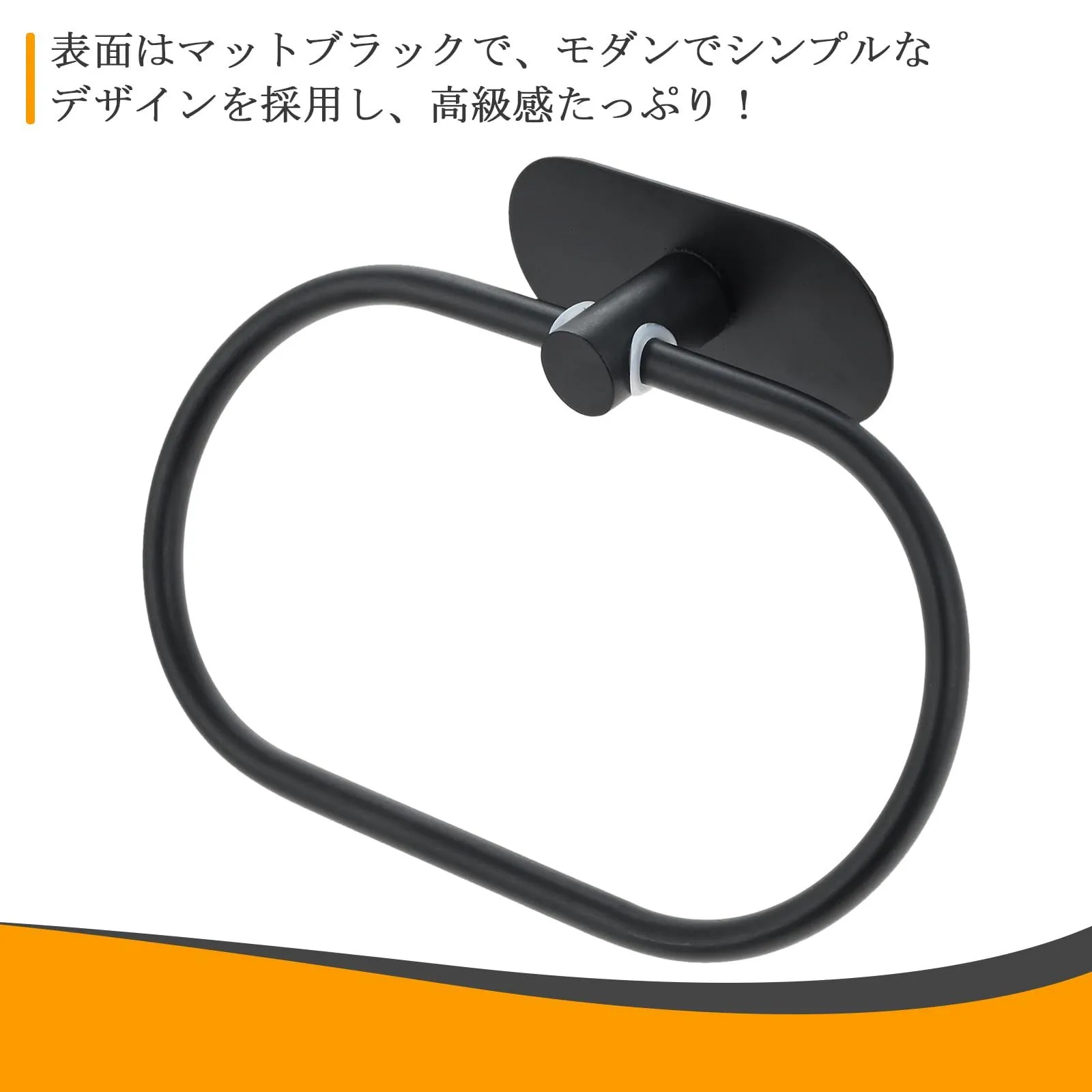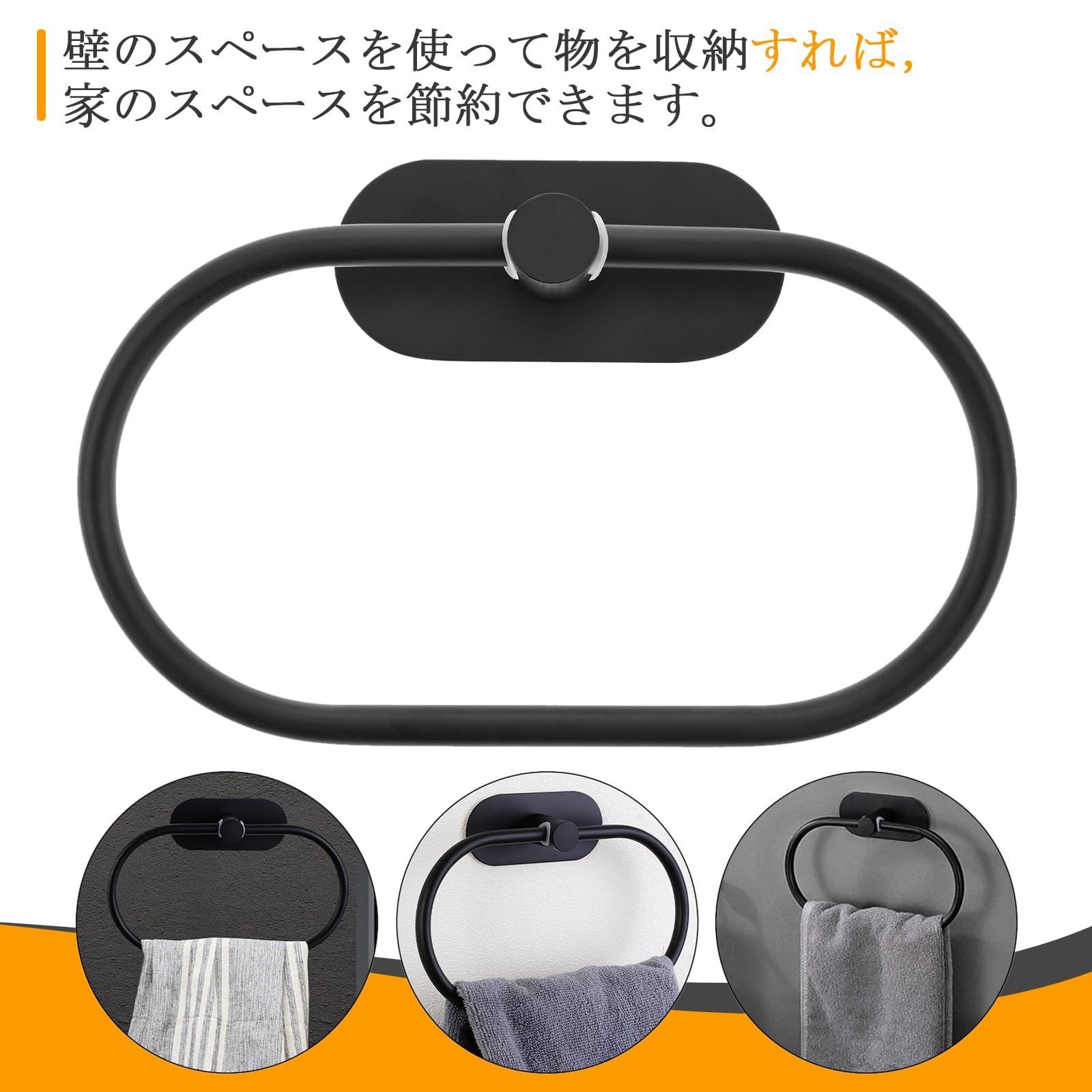 タオルリング タオル掛け タオルハンガー ステンレス粘着性高い 壁付け 浴室 バスルーム 洗面所 キッチン トイレ用 ブラック