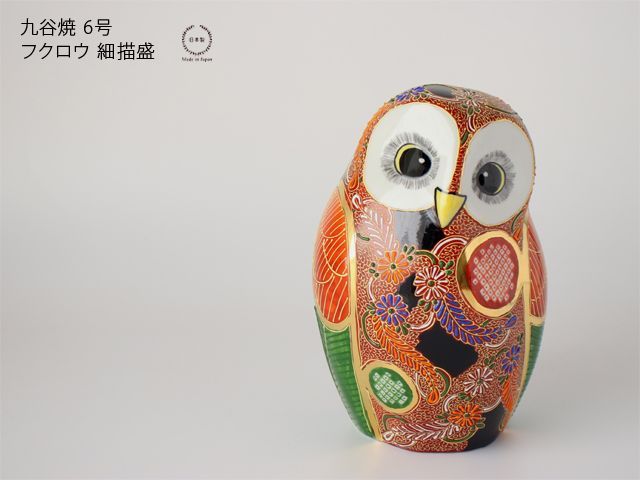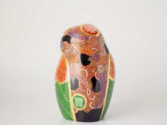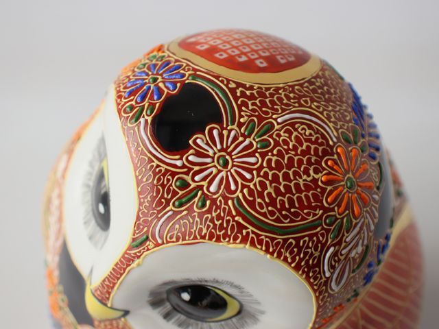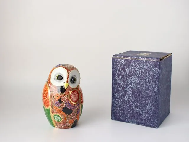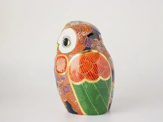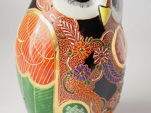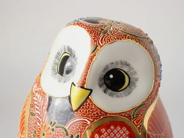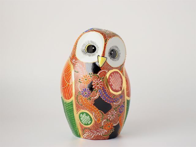 幸福のシンボル 立体的でデコラティブな彩飾を施した九谷焼のフクロウ