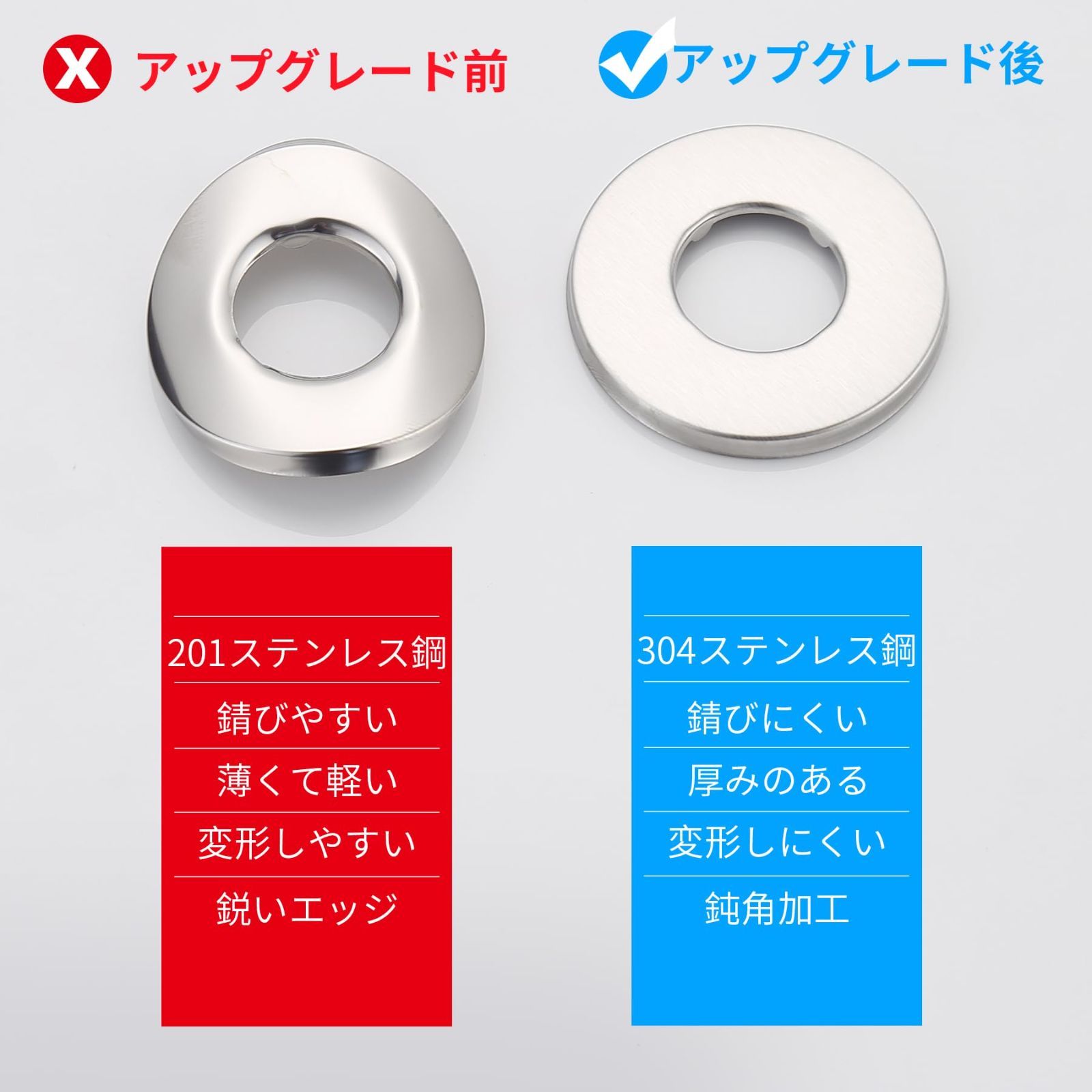 表面処理防錆?:この2口蛇口?表面は?ステンレスブラシ加工?を採用し、?銀色マット質感?を実現。ご注意,沿岸地域の屋外?で?蛇口?をご使用の場合、雨水中の?微量な酸性成分?による影響で表面に?軽い錆跡?が生じることがありますが、これは?正常現象?です。?研磨剤不使用の中性洗剤?を?柔らかい布?に含ませ、軽く拭くことで?表面の汚れを除去?できます。
