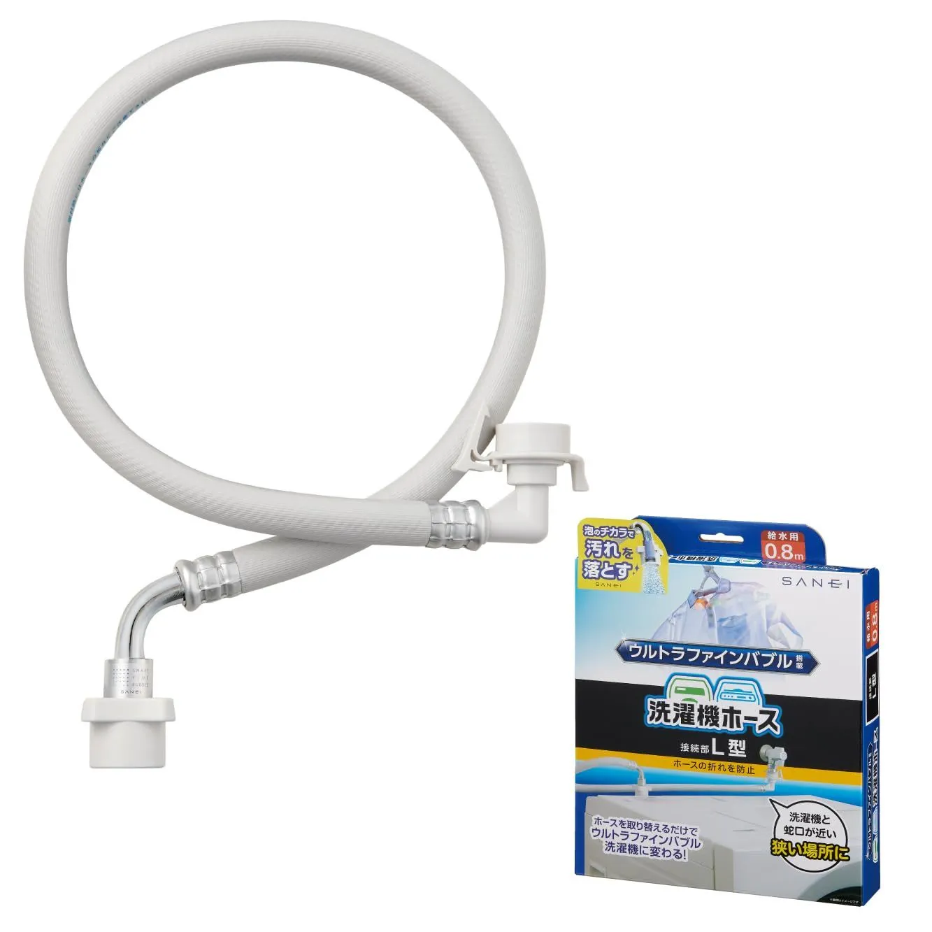 SANEI(サンエイ) ウルトラファインバブル自動洗濯機給水ホースL型 0.8m 折れ曲がり防止 全自動洗濯機接続 G3/4 PT1706-1-0.8