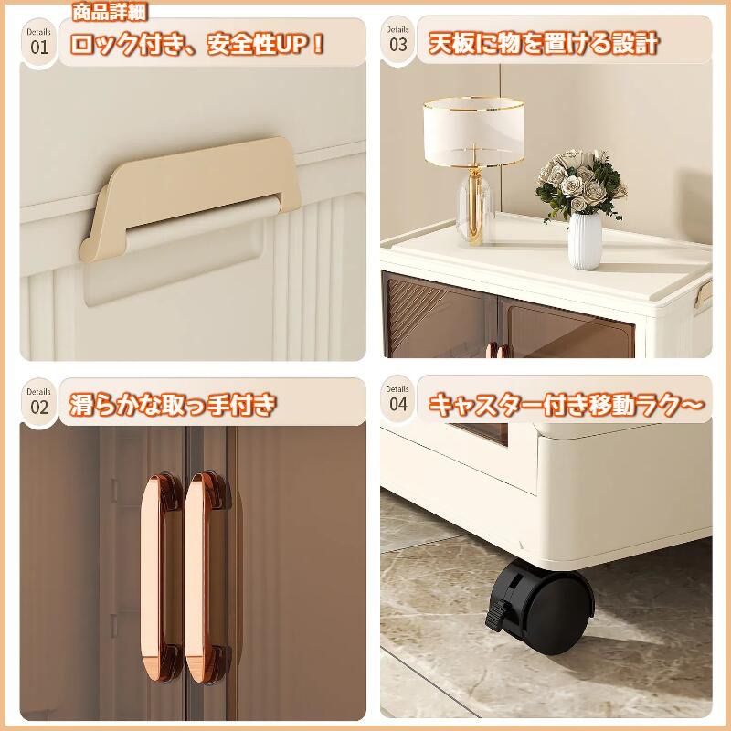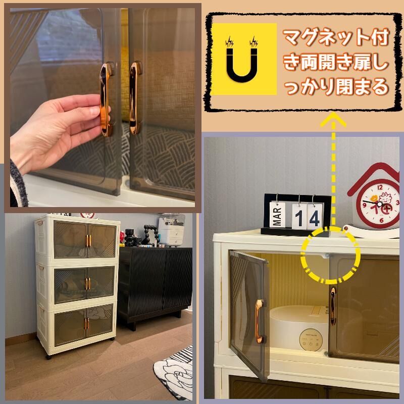 扉はマグネット式で、取っ手も付いており、開け閉めが簡単です。360°回転可能なキャスターがついています。伝統的キャビネットに比べて移動しやすいです。箱が重くても簡単な移動している、掃除の際の移動に対応して いるのが嬉しいポイント。