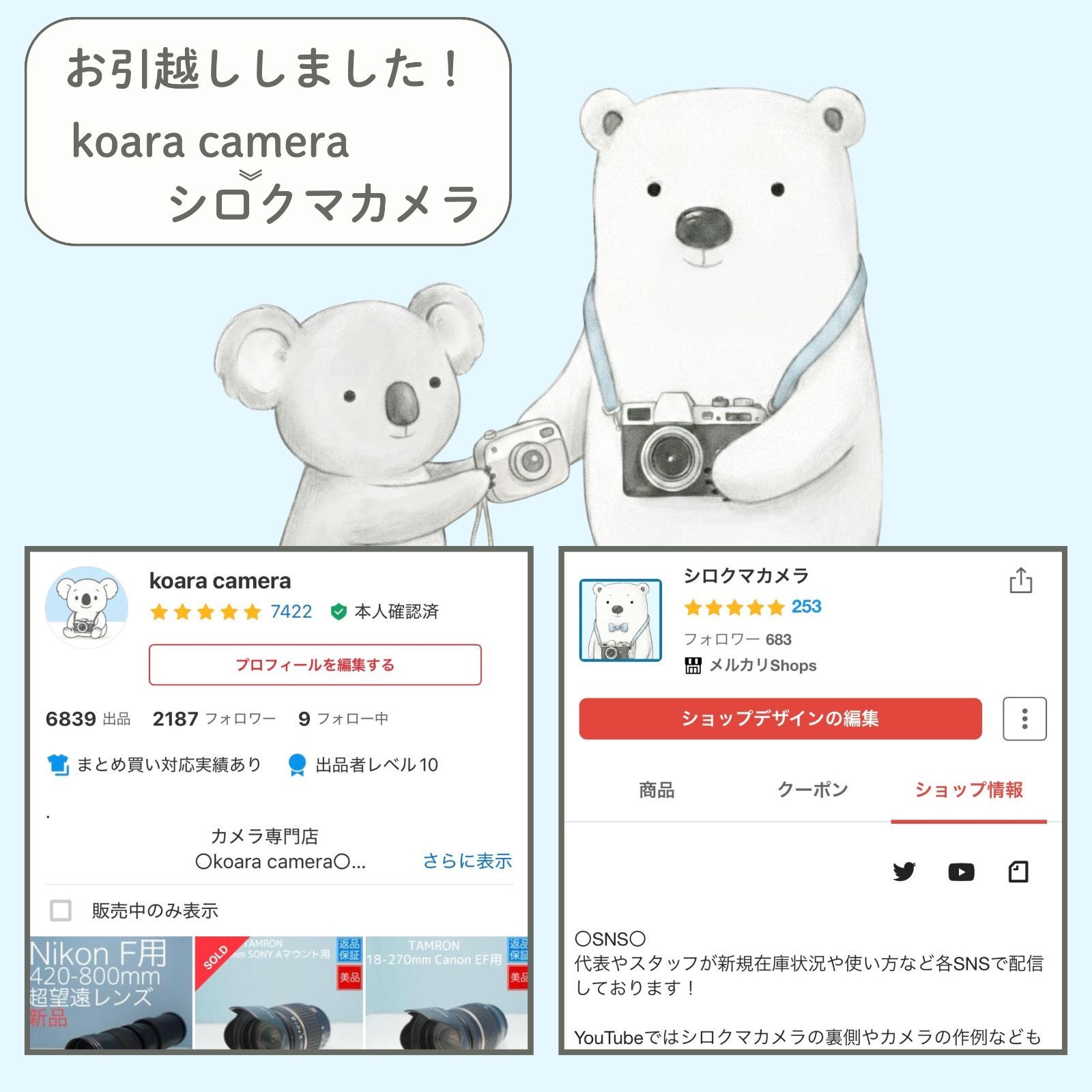 今まで『koara cemera』というアカウントで7000件以上の商品を販売しておりましたが、この度公式SHOPを開設しました!