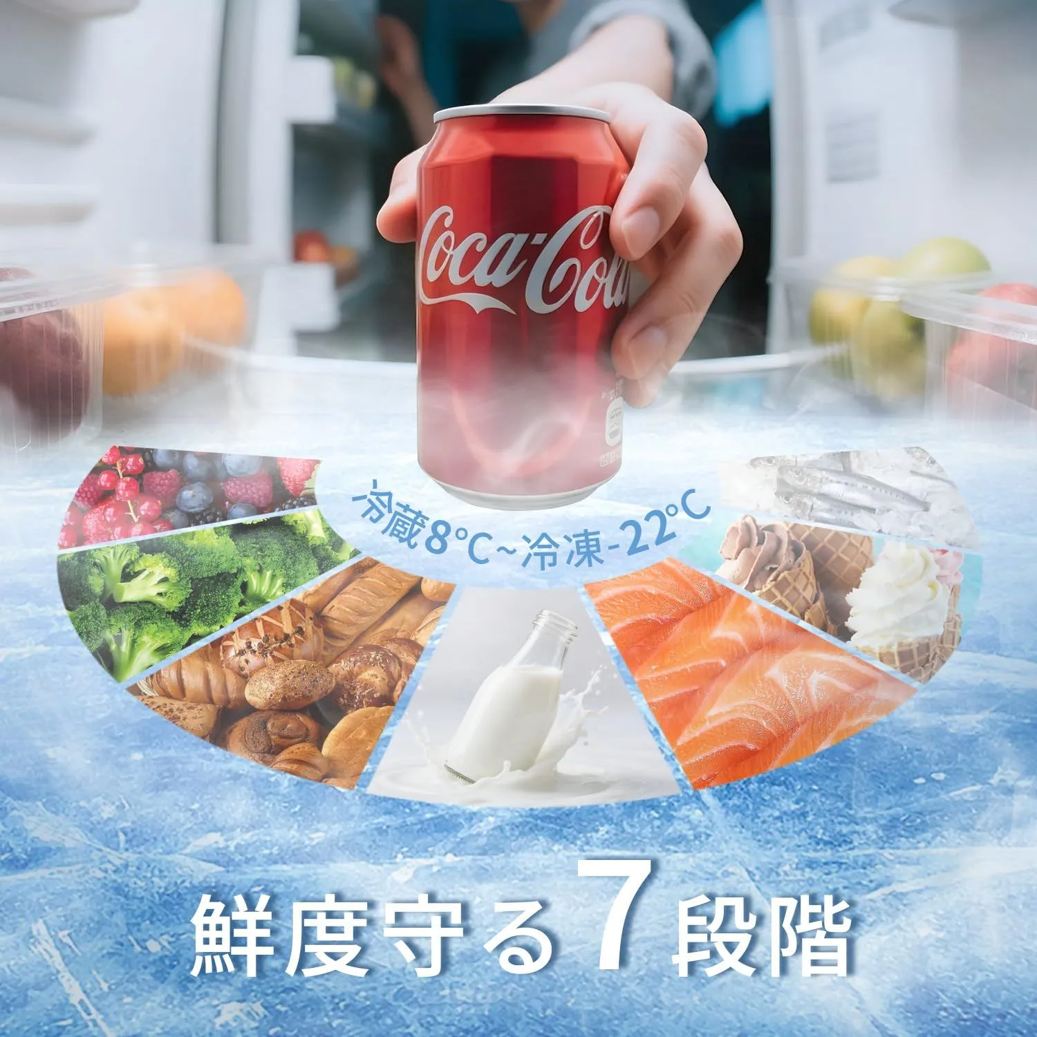 【7段階の温度調節】 「食材にぴったりの温度で保存したい…」→7段階のきめ細かな温度調節。 お肉やお魚は鮮度をしっかりキープし、デリカテッセンやチルド食品は最適な状態で保存できます。食材ひとつひとつの特性に合わせて鮮度と美味しさを最大限に引き出す、まるでプロのような温度管理で、食材の美味しさを存分にお楽しみください。 ????????????????????????????????????????????????????????????????????????????????????????????