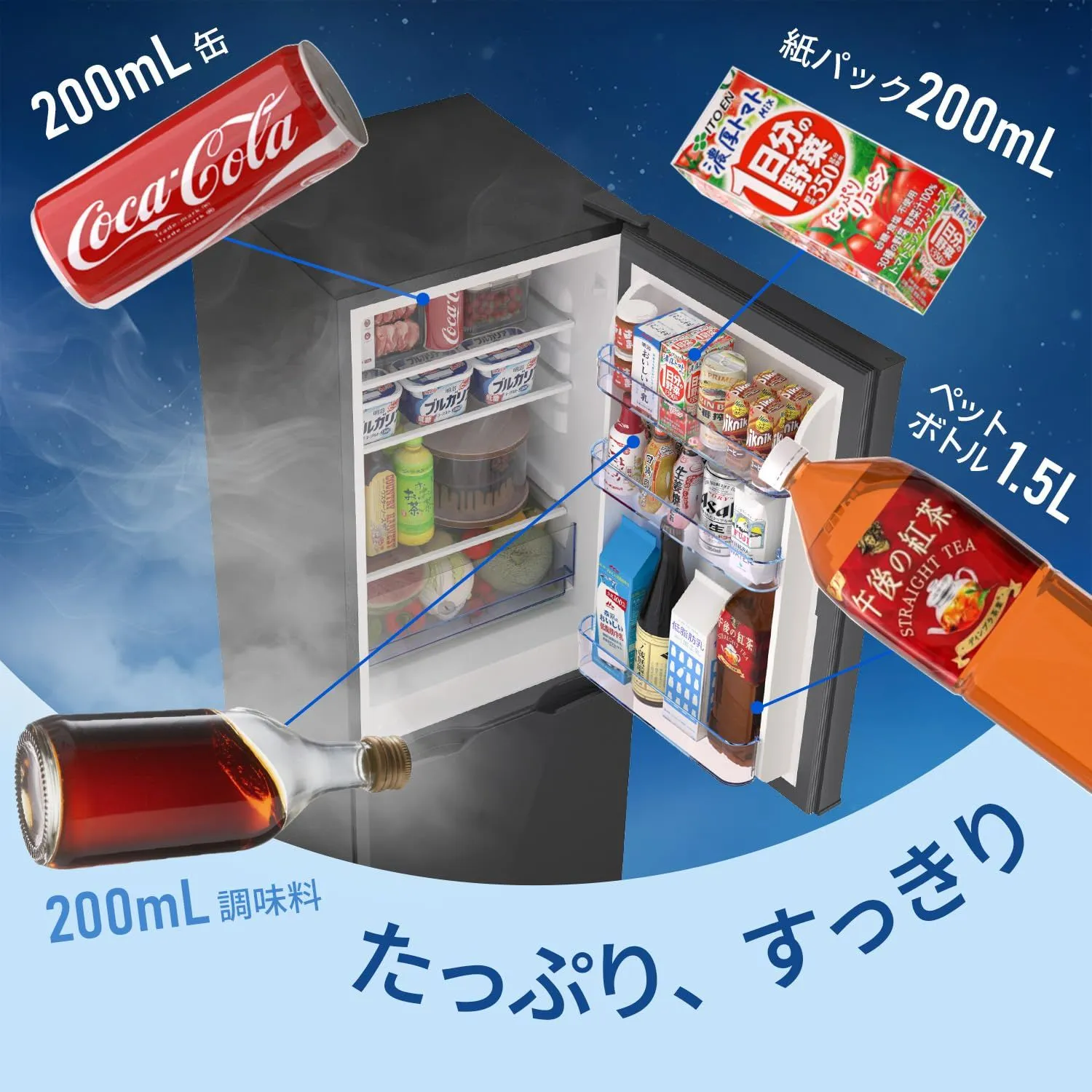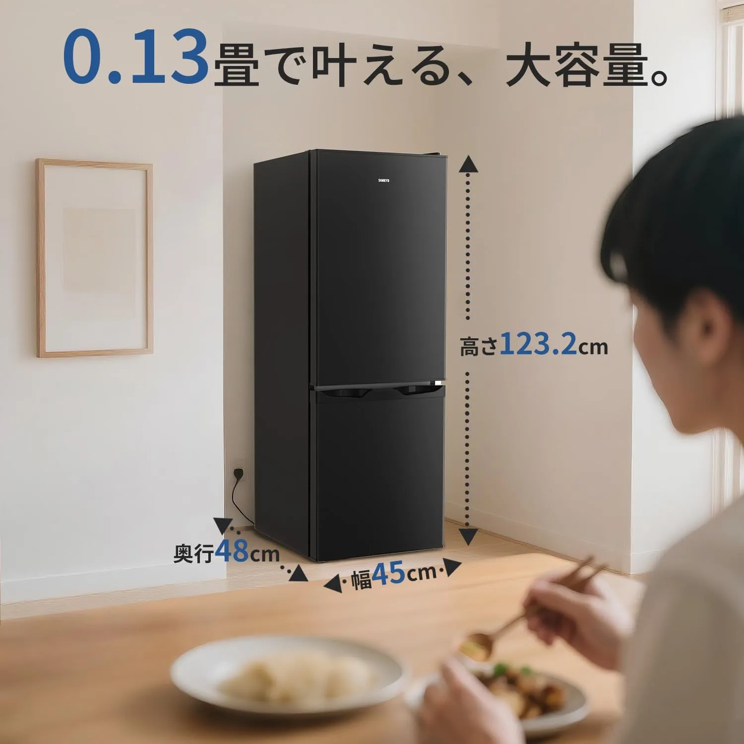 【省スペース超薄設計】 「冷蔵庫を置く場所がない…」→本品は幅わずか45cmの超スリムボディ。キッチンの狭い隙間や細い廊下にもすっきりフィットします。設置に必要な面積は約0.13畳分。マンションやアパートの限られた空間でも、圧迫感を感じさせず、すっきりとお使いいただけます。