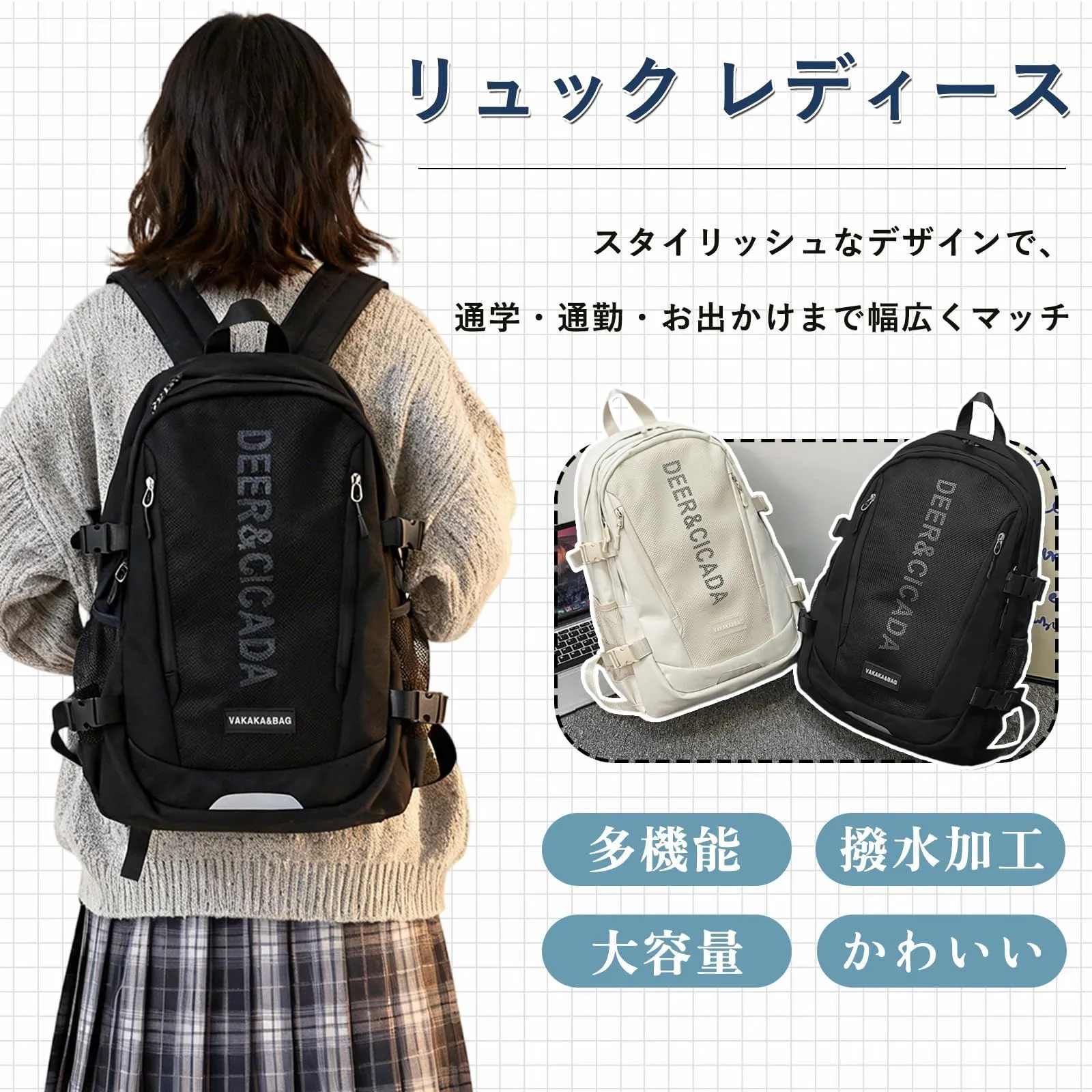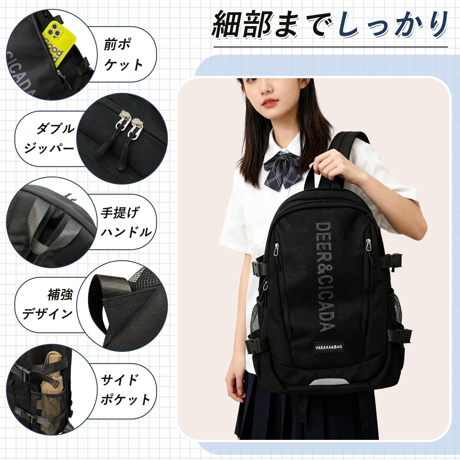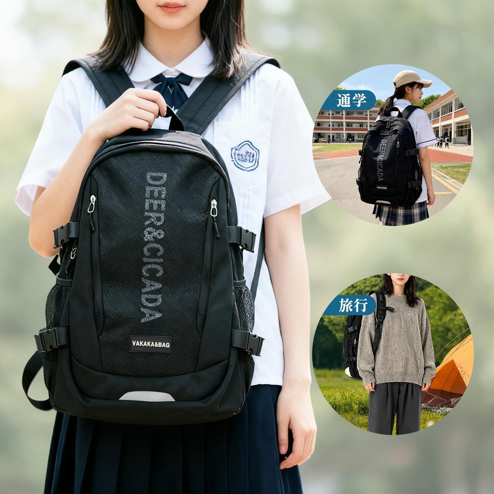[HeiDiga] リュック レディース 通学 リュックサック 韓国 大容量 リュック 高校生 女子 人気 軽量 可愛い タウンリュック バックパック アウトドア スクール リュック 女性 シンプル 通勤 旅行 防水 おしゃれ 黑