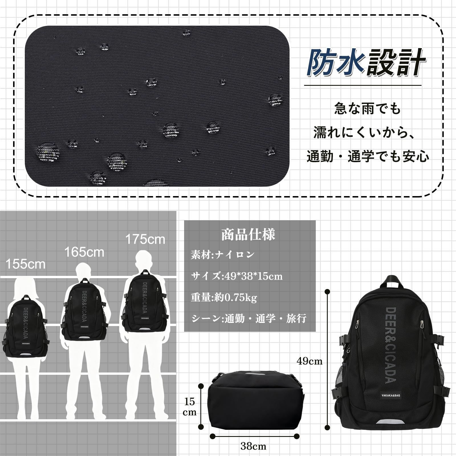 【耐久性のある防水生地】この女性用バックパックは、高品質の防水ナイロンを使用しており、効果的に中身を保護することができます。軽くて耐久性に抜群で、異臭がしません。金属製の滑りやすいファスナーはしっかりしており、軽量で毎日安全にお使いいただけます。ショルダーストラップとポケットの縫い目は、補強されており、バックパックの耐久性が向上しています。