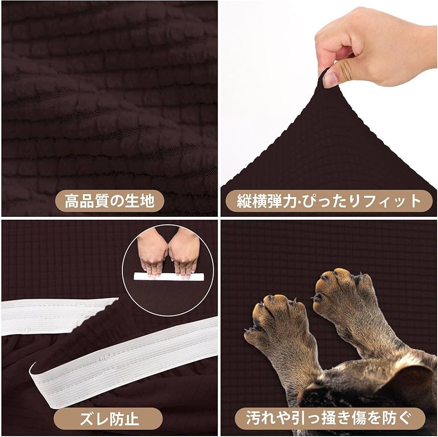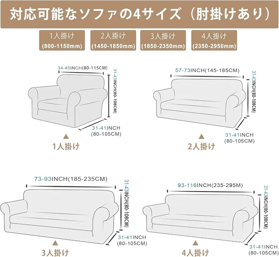 【滑り止め】このソファーカバーは伸縮性の高い素材、伸縮性のある裾が縫い付けられており、ソファーをしっかりと包み込み、しっかりとフィットし、滑り落ちにくいです。抜群の伸縮力でソファカバーが変形しにくい、簡単に着脱でき。肘付きソファーに適用します。