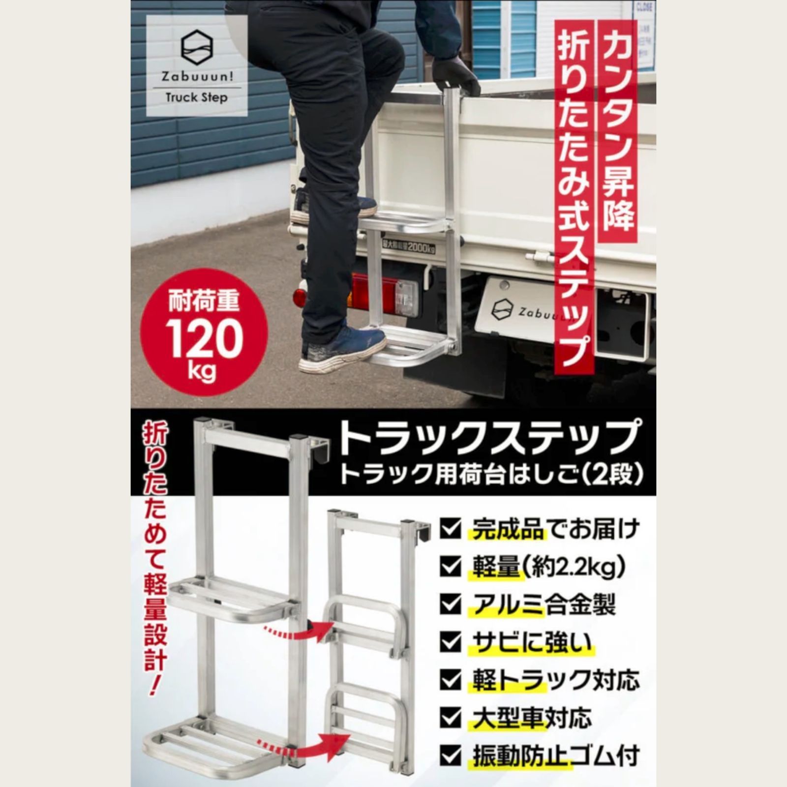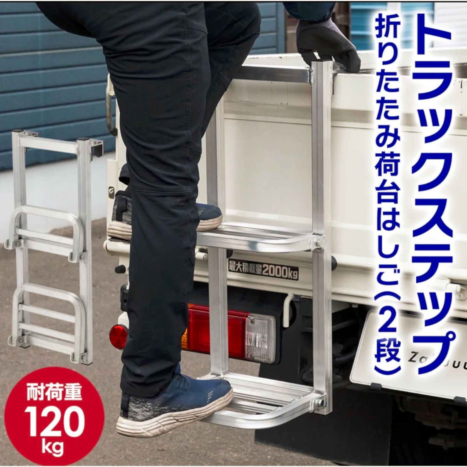 【折りたたみ式】折りたたみ式なので省スペースに収納ができ、持ち運びにも便利です。ステップは2段ですのでスムーズに荷台へ乗り降りできます。また、左右についているボルトを調節することで、折りたたみのスムーズさを調整可能です。