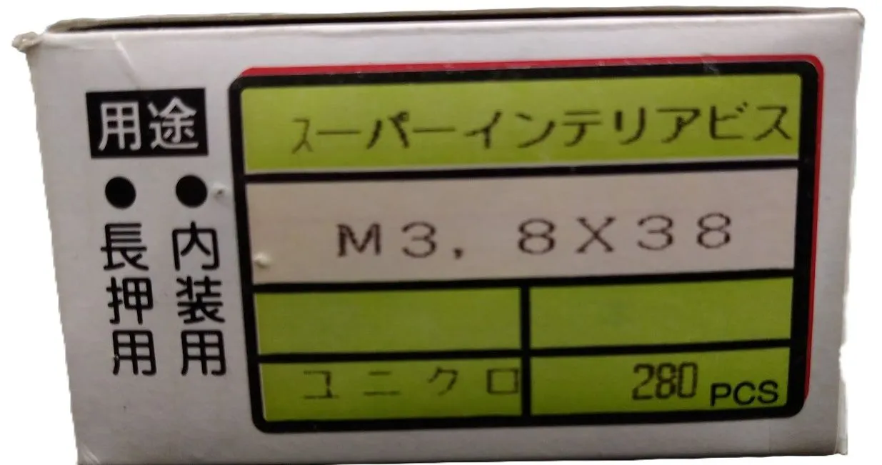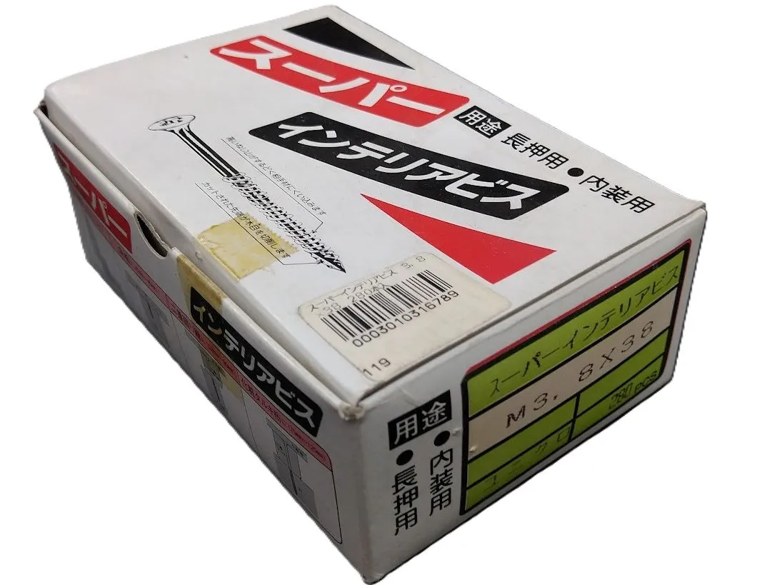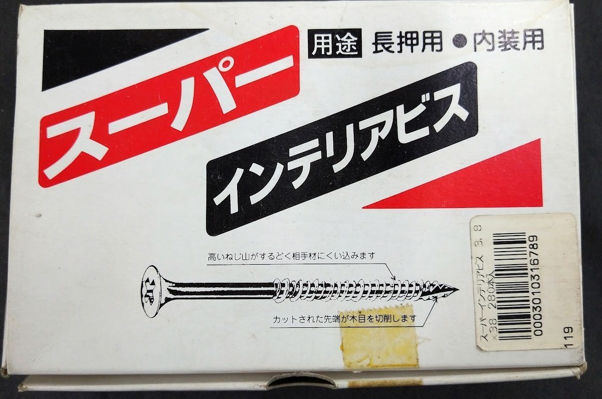 スーパーインテリアビス M3.8X38 280本入 6箱(計1680本) 内装用 長押用 新品、未使用ですが店舗長期保管の品で、パッケージに色褪せ、汚れ、破れがあります。ご了承ください。 希望数量や他の商品との組み合わせがありましたら質問からお気軽にお問い合わせください。 新たに商品ページを作成します。 ショップのすべての商品の上の方に表示されます。 ご購入頂けない場合もご返答は不要です。