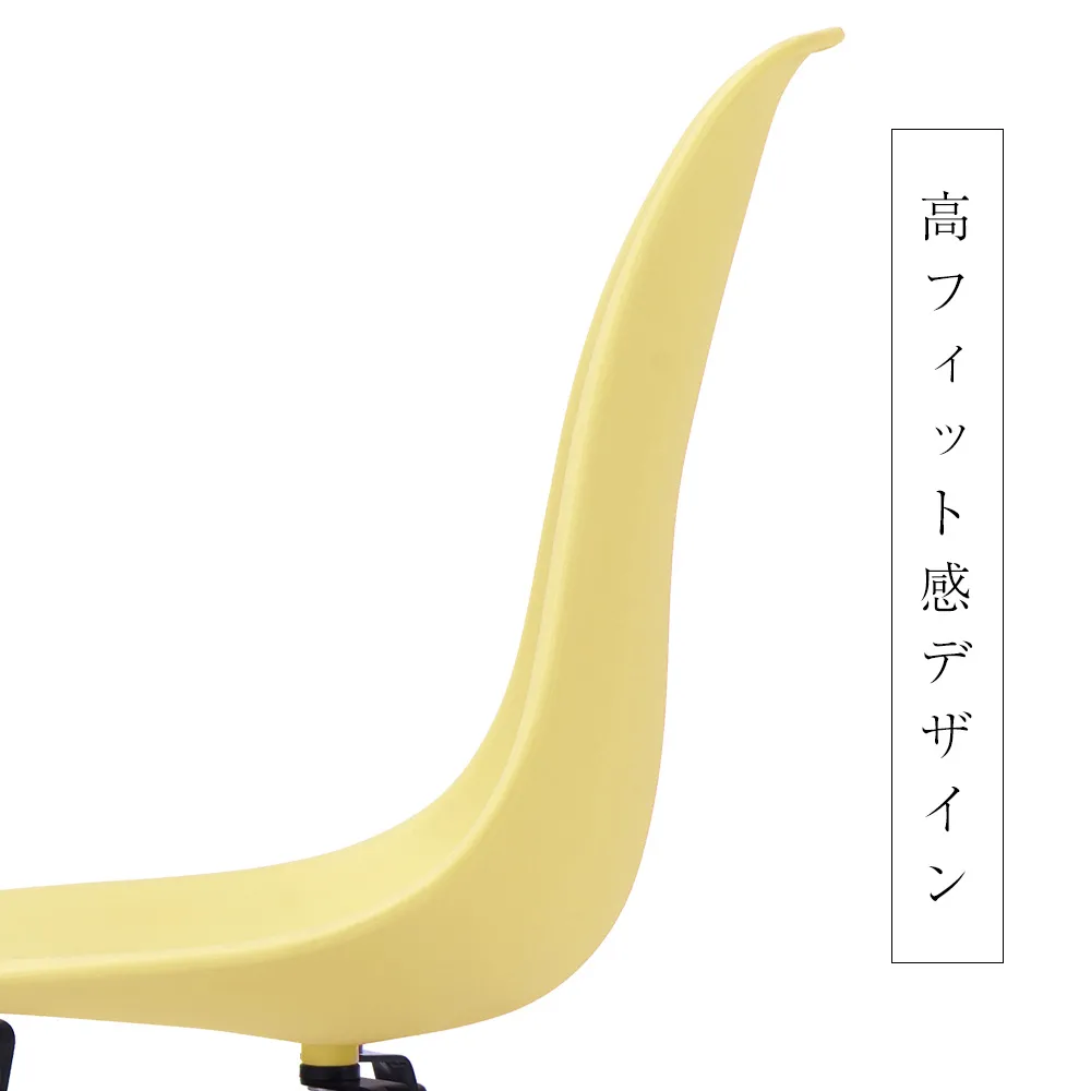 【身体に自然とフィットするシェル型座面】イームズチェア最大の魅力は、何と言ってもなめらかな曲線を描く、座面一体のシェル型デザインです。ポップな印象のシェル型座面は、想像以上のフィット感で腰を優しく包み込みます。身体に馴染む座り心地は長年愛されてきたチェアならではです。