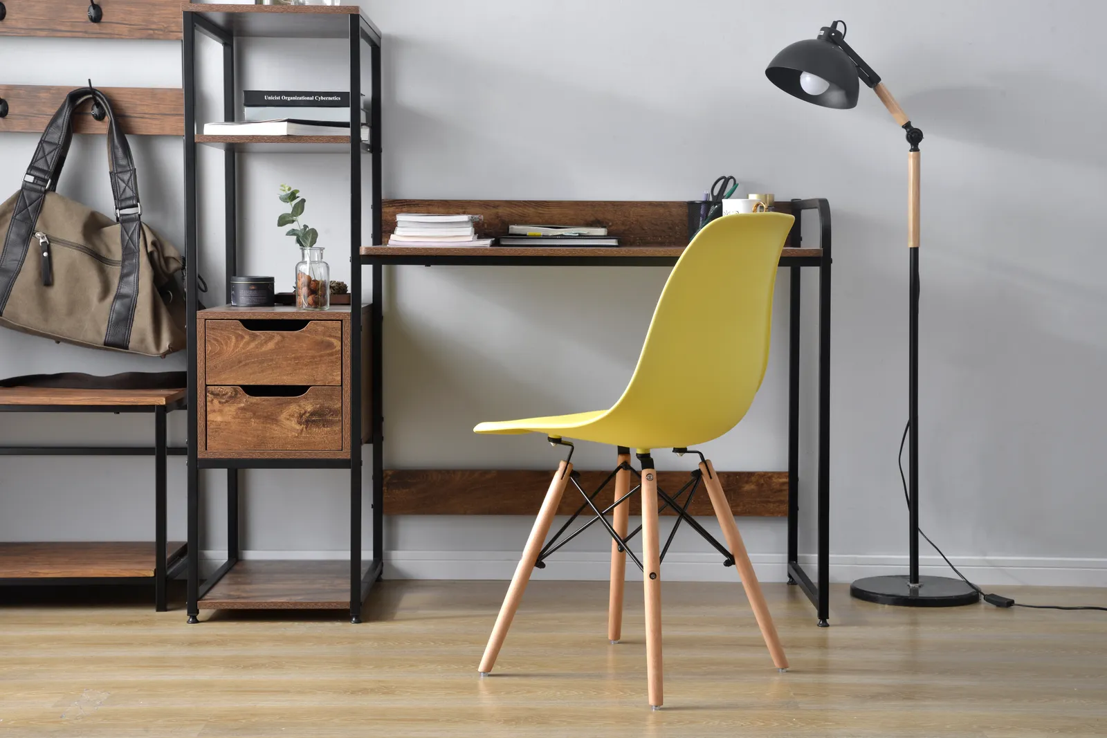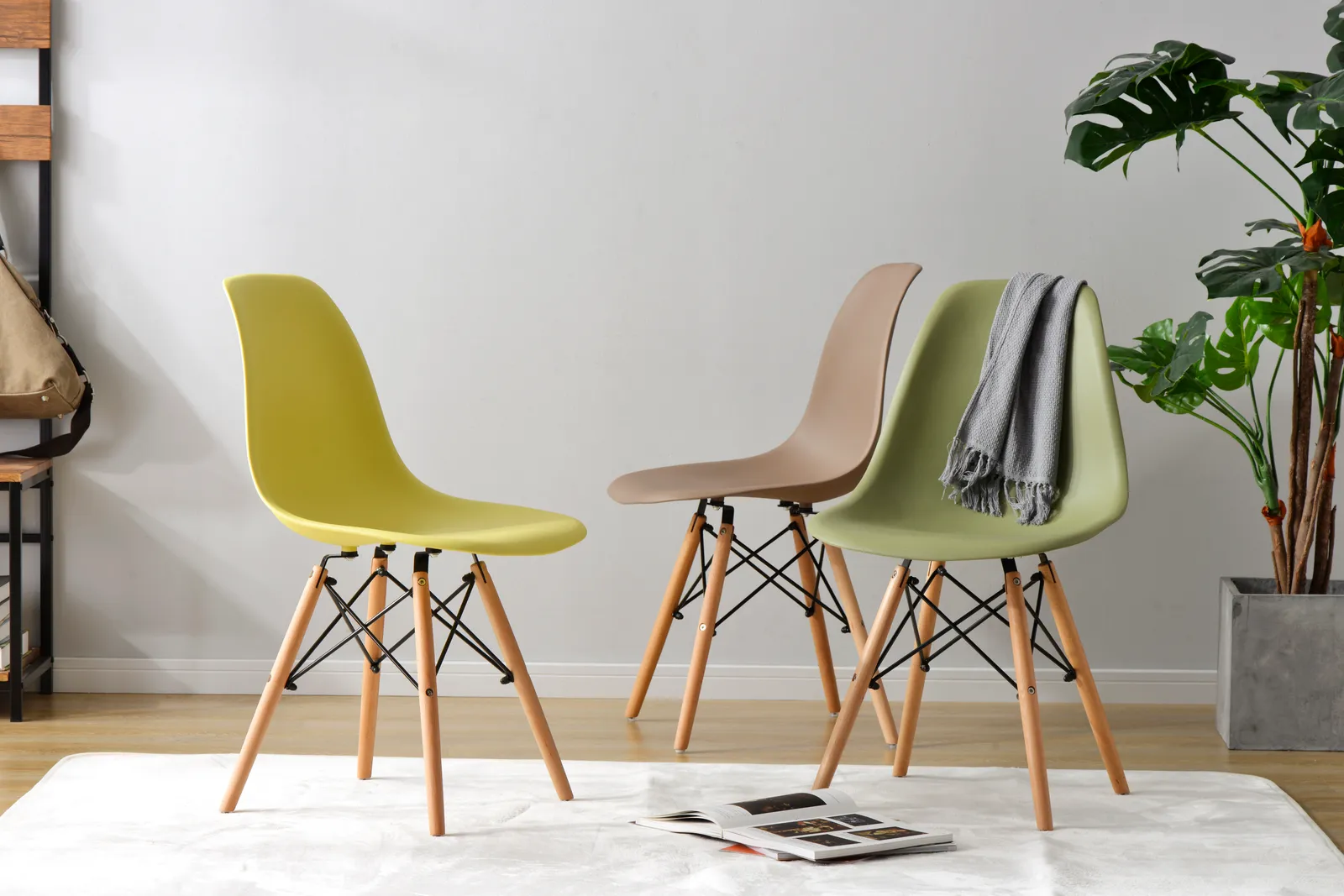 【目を引く木脚のデザイン】イームズチェアの魅力は、座面のデザインにマッチしたこの木脚にあります。思わず目を引く脚部のフォルムがチェアのデザイン性を高めます。