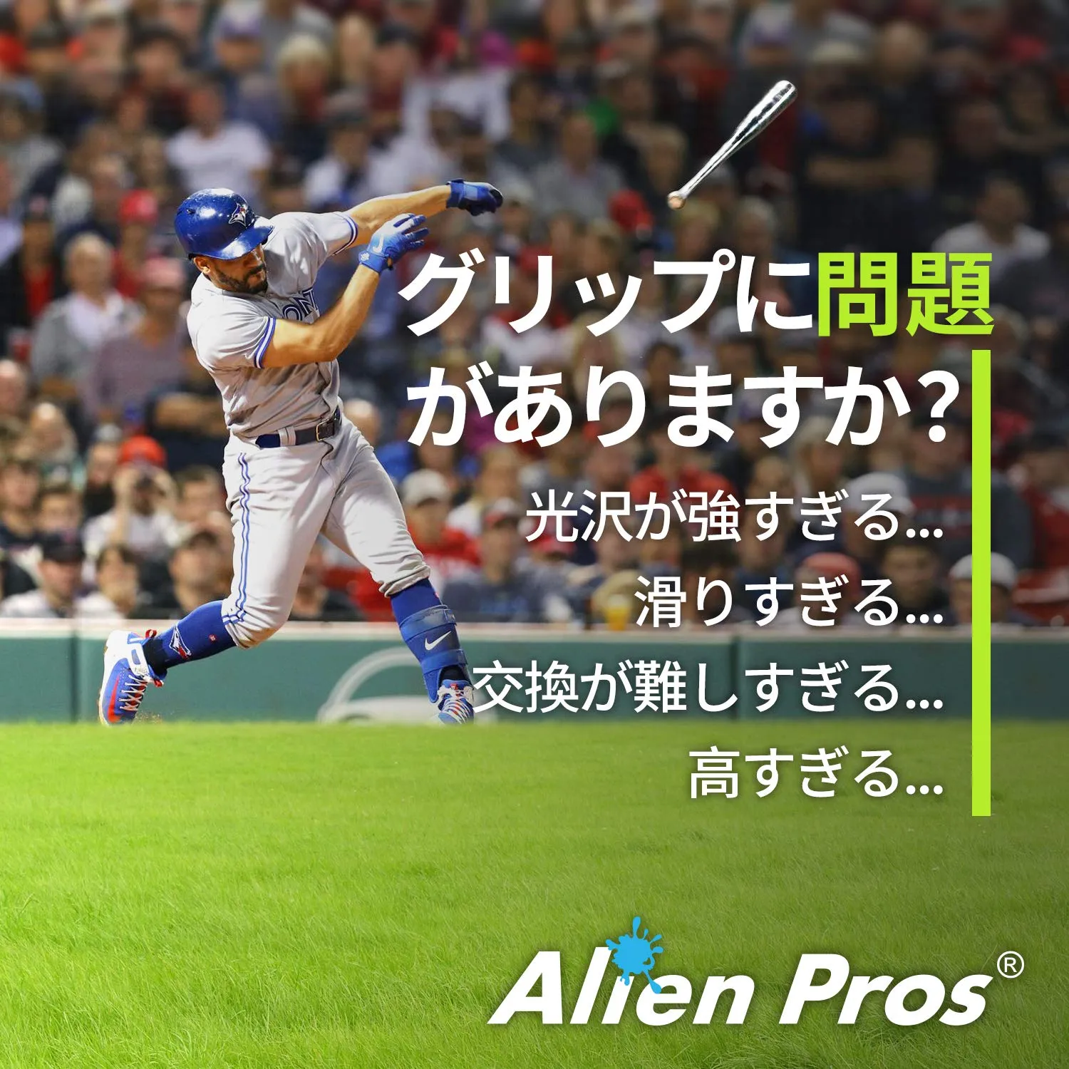 Alien Prosでは、お気に召していただけなかった場合、返金致します。私たちは最高のバットテープを目指していますが、万が一101%ご満足いただけない場合は、お知らせください。誠意をもって対応致します。