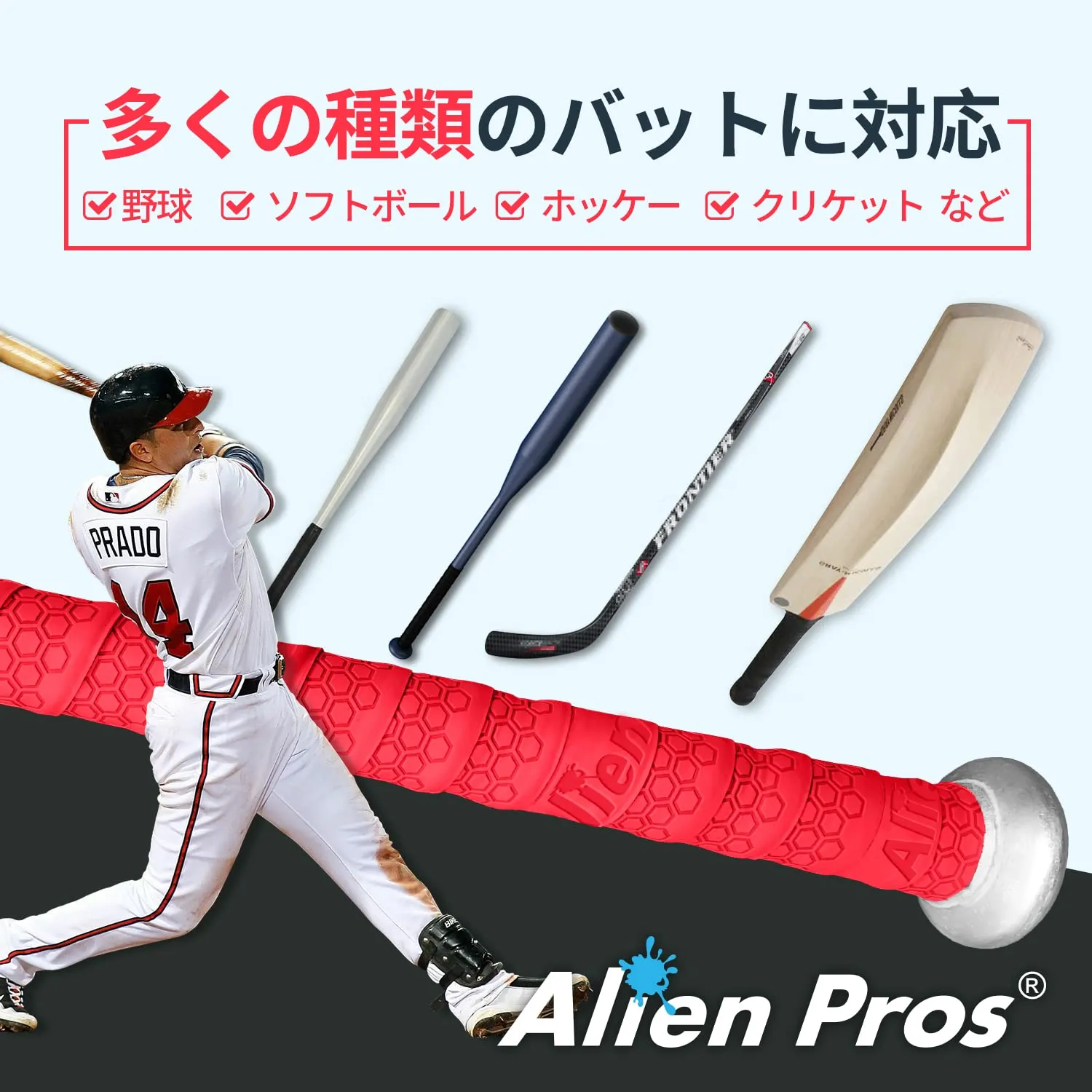 Alien Pros野球用バットグリップテープ(2グリップ)? 1.1 mmプレカット、プロ品質のバットテープ?古い野球用バットグリップの代替品?バットを保護して、壮大なホームランを打ちましょう(2グリップ,レッド)