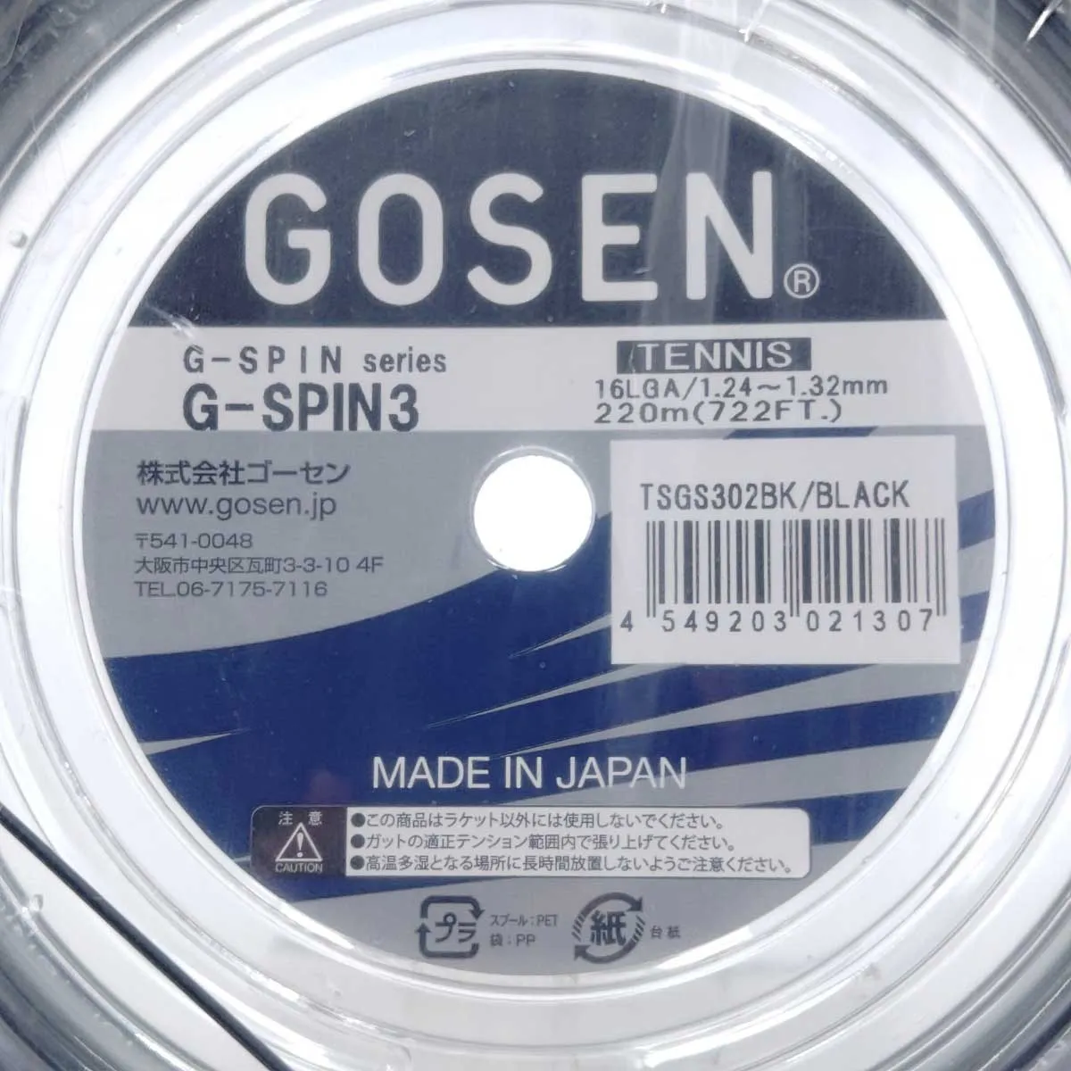 [商品番号] tz00018715 [ブランド] ゴーセン [タイプ] G-SPIN 3 硬式テニス ストリング ガット ロール 16LGA 220m [型番] TSGS302BK [カラー] ブラック [状態] 未使用品