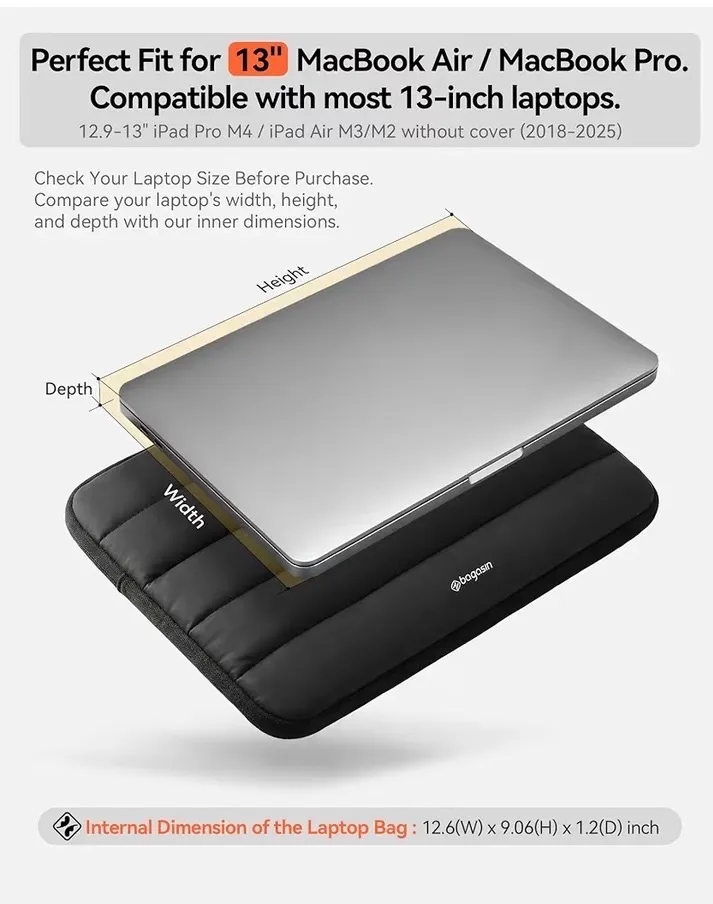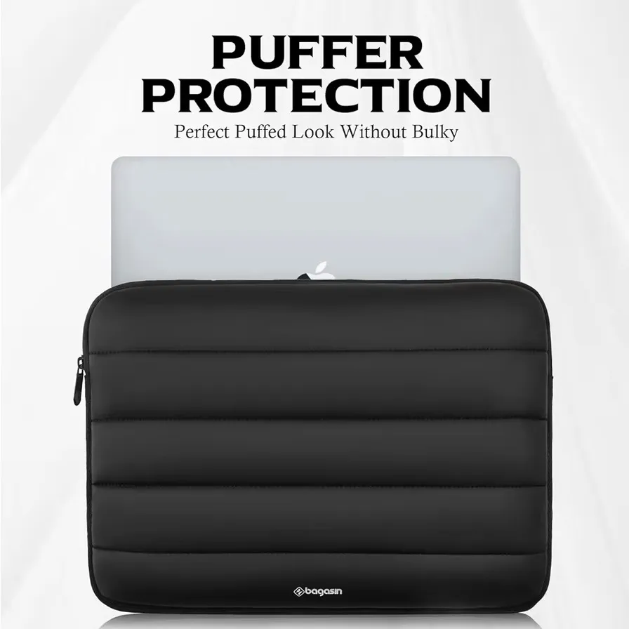 【しっかりとした保護】: Bagasin Puffyラップトップスリーブケースは、ラップトップを非常に滑らかで伸縮性のあるライクラ(防水・防汚)、不織布層、6mm耐衝撃で洗浄可能なコットン、クリスタルソフトな裏地などの4層で保護します。