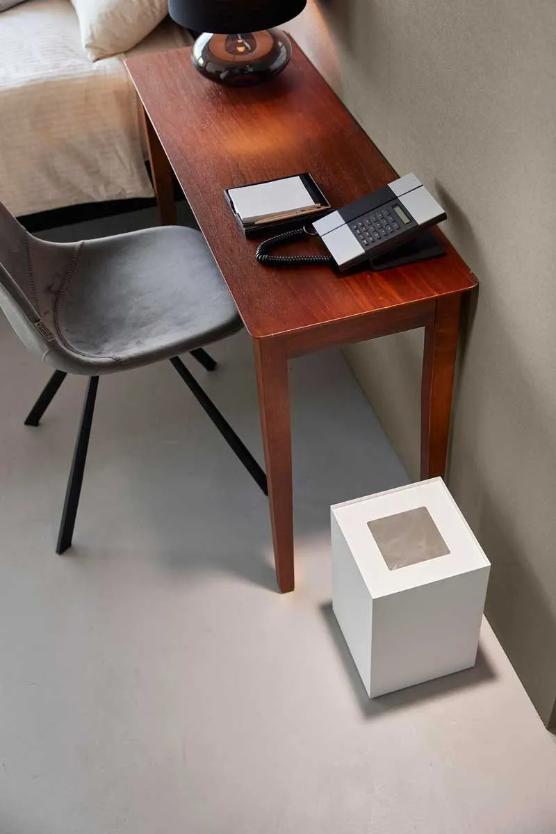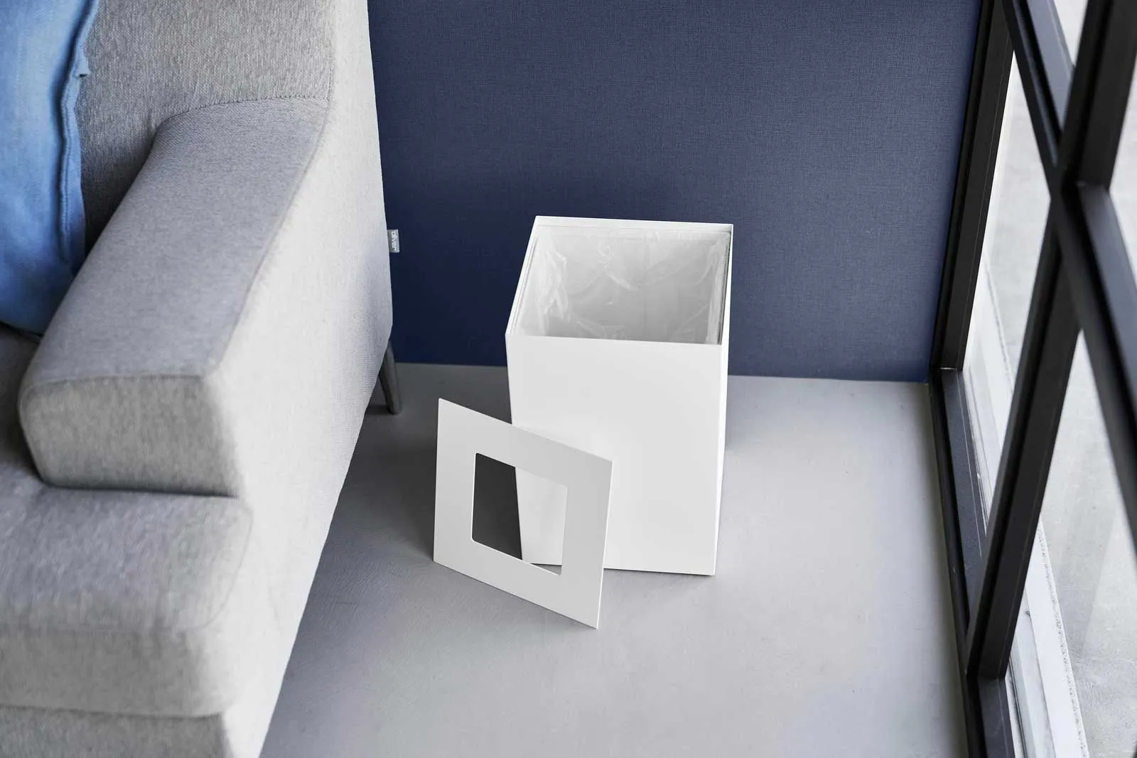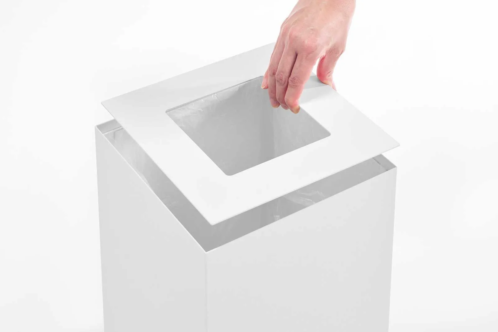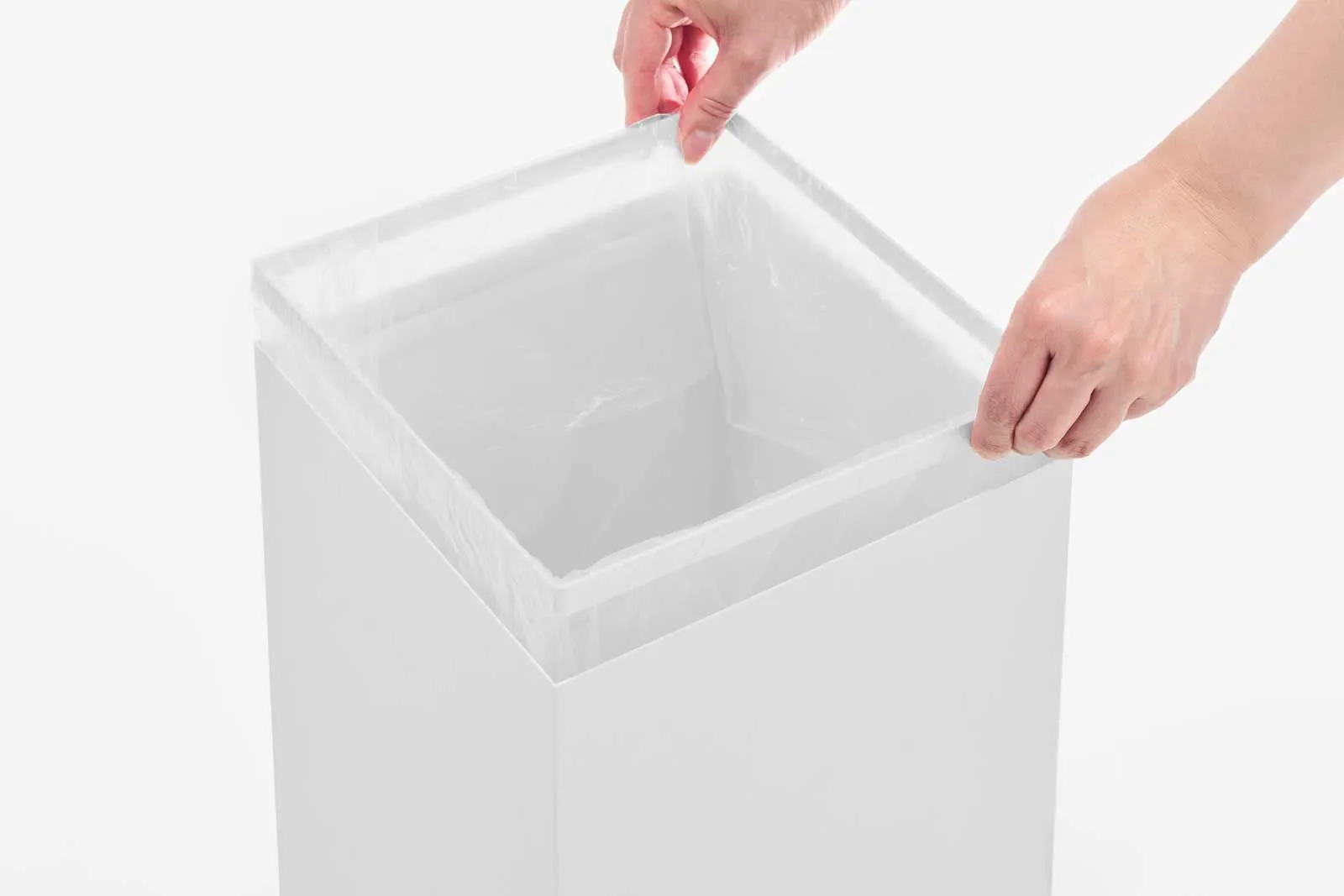 当ショップは国内正規品(新品)のみ取り扱いのため、安心してお買い求め頂けます。 見た目も使い勝手もスマートな、スチール製のスクエア型トラッシュカンです。内側のストッパーリングでゴミ袋を固定でき、袋が見えず生活感を抑えられます。 簡単に取り外せるスチール製の蓋は、中のゴミを見えにくくし、清潔で整った印象に。トラッシュカンの容量は14Lで、20Lのポリ袋をセットして使用できます。