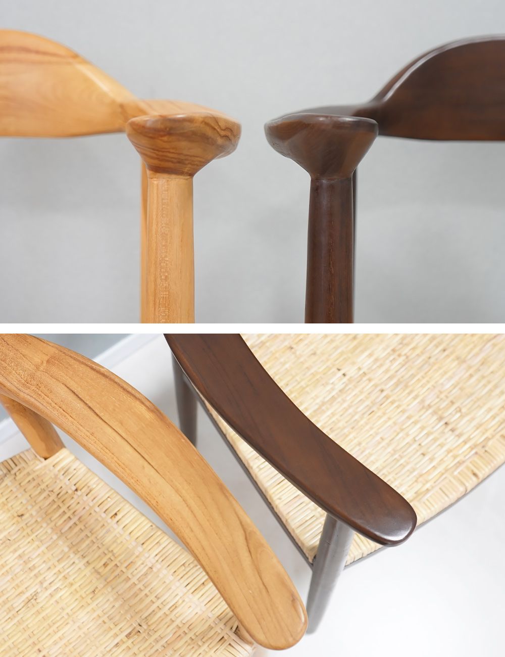 ダイニングチェア 天然木 無垢 チーク 2脚 食卓椅子 北欧 天然ラタン 籐 シンプル モダン オシャレ スタイリッシュ インテリア レストラン カフェ 肘掛 ゆったり 完成品 椅子 イス dchidn (2, ナチュラル, 天然ラタン)