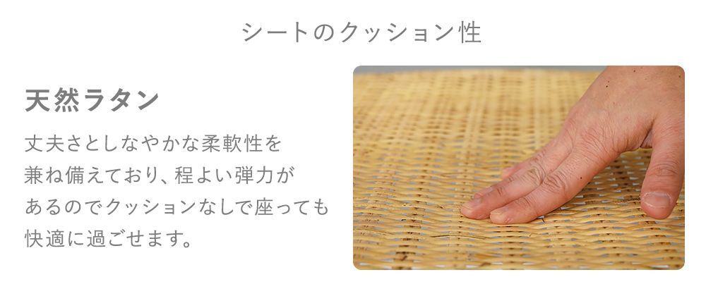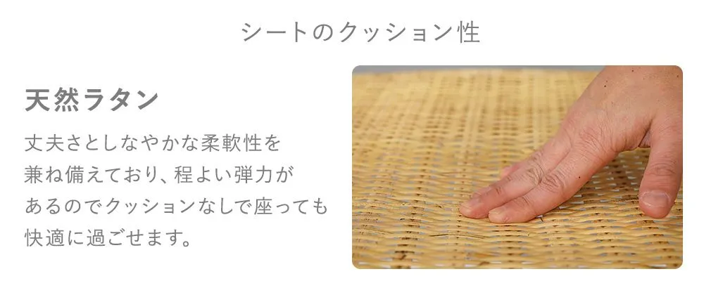●均等荷重は天然ラタン/約120kgとしっかりしています。
