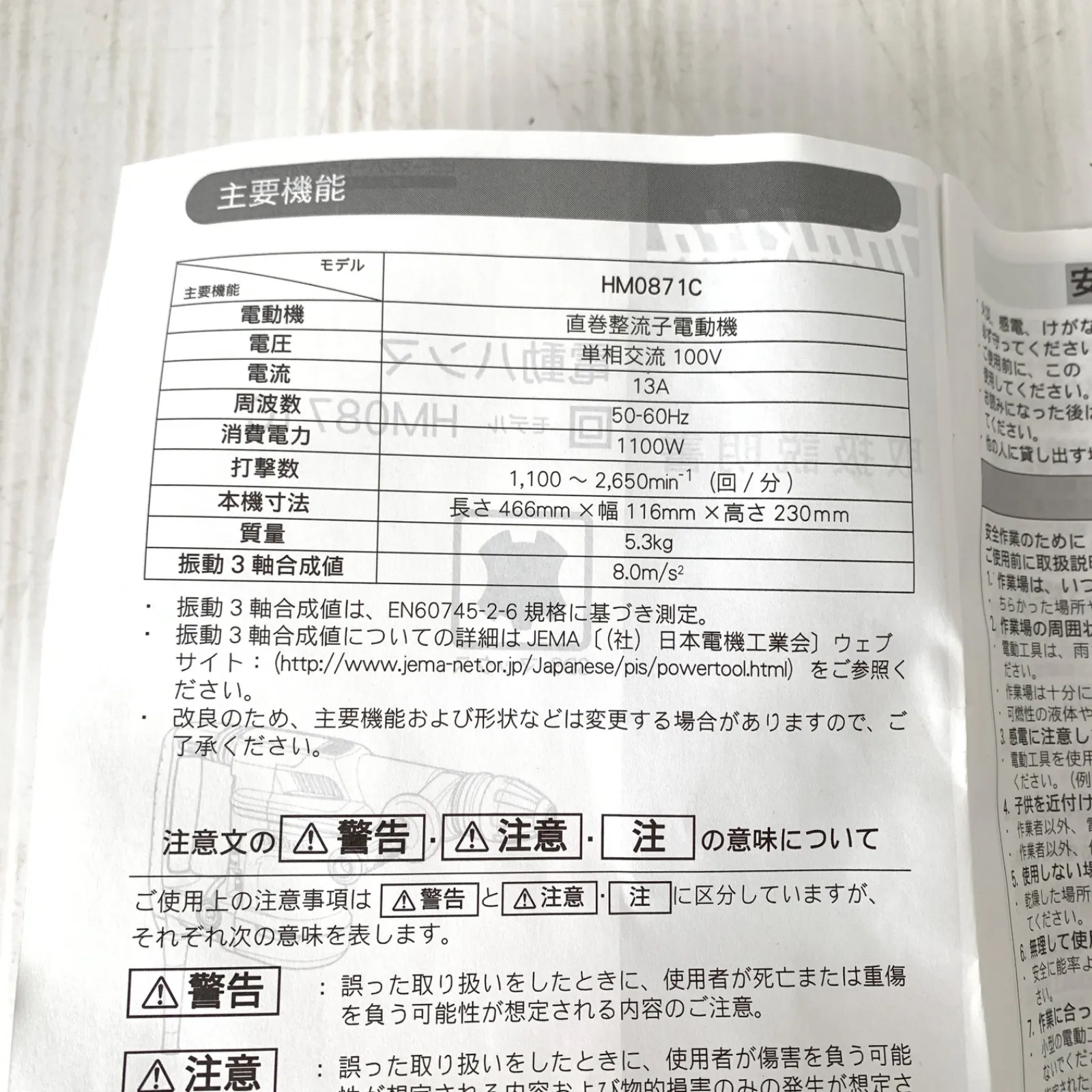【未使用品】マキタ makita 電動ハンマ HM0871C