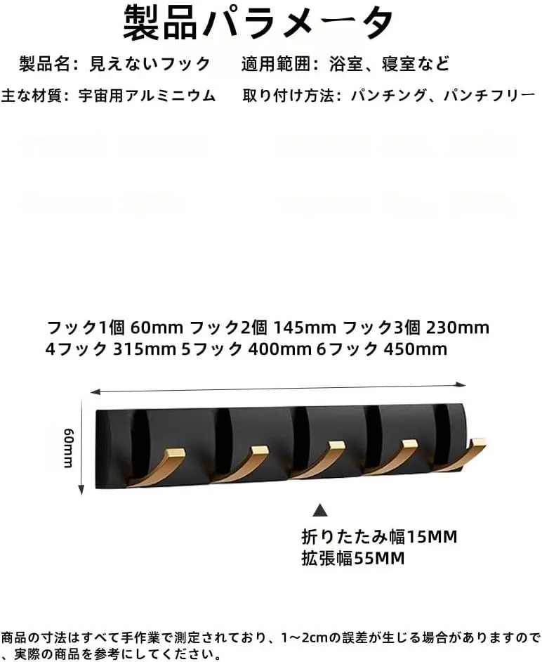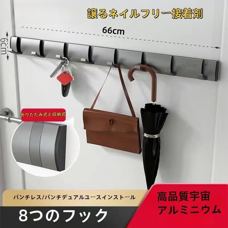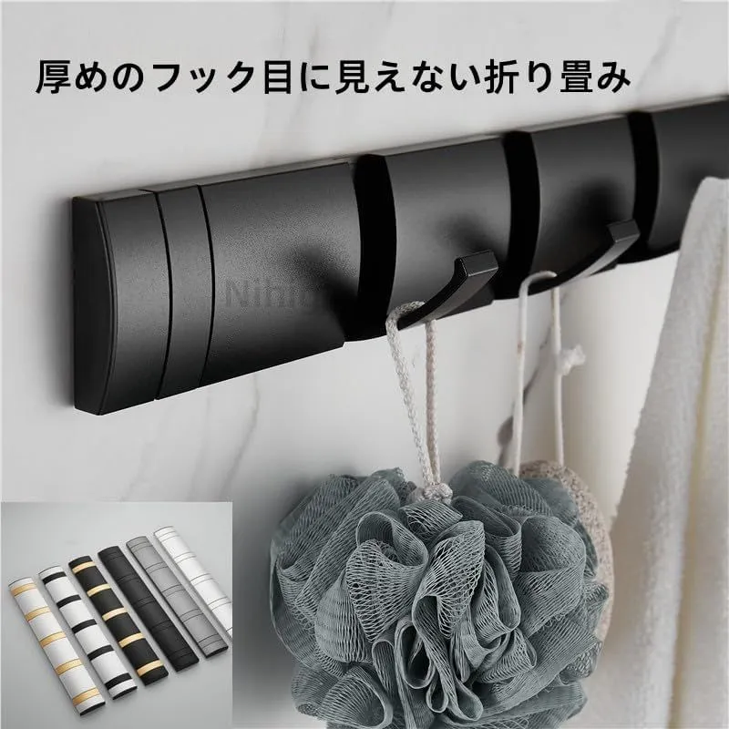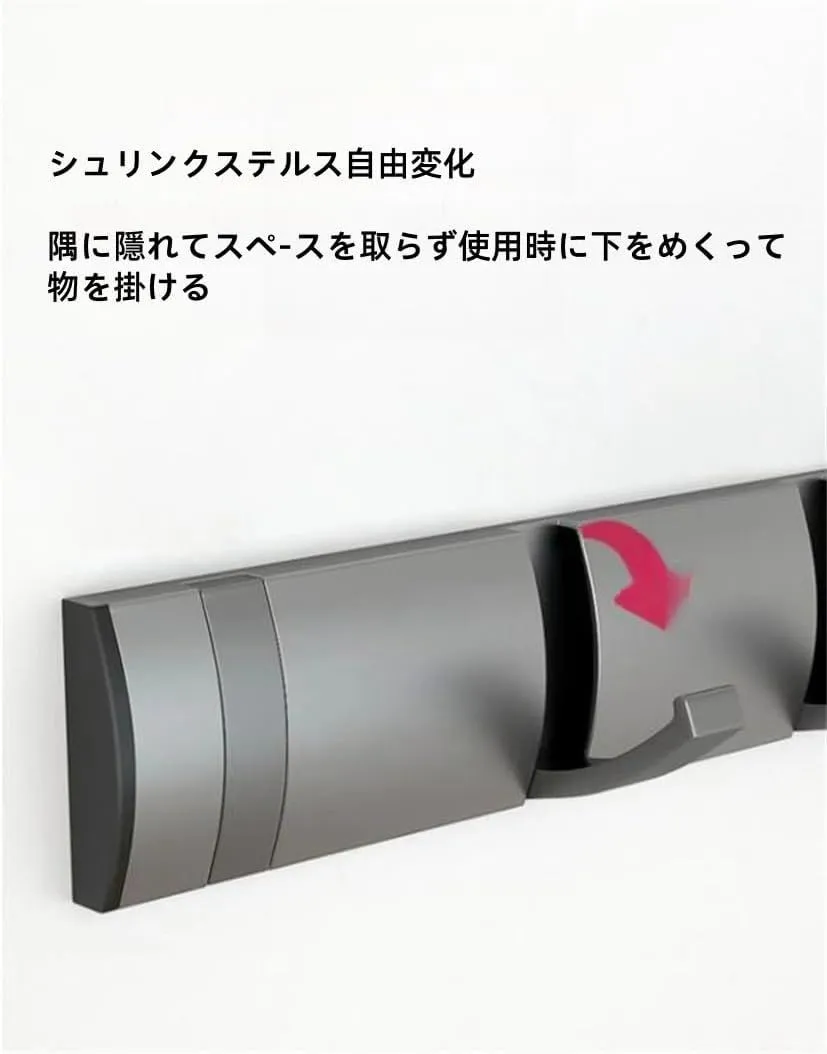 【省スペース設計】フックは収納タイプなので、使わない時はフックを収納出来て便利です。狭いところでも問題なし、場所を取らずオールシーン使えます。こちらの壁掛けはんがーラックは、シンプルなデザインをしています。お客様の部屋のスタイルを問わず合わせることができて、幅広い多用途ハンガーかけです。