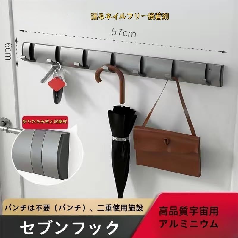 【大耐荷重とアルミニウム製フック搭載】どのフックもの最大負荷重量は7キロほどになっています。それだけでなく、フックはアルミニウム製で、錆びに強く、耐久性に優れています。湿度の高い所でも本ウォールハンガーの外観に影響を与えず、腐敗やかびが生えることなく何年かご使用でもいつも明るくて新しいもののようなものです。