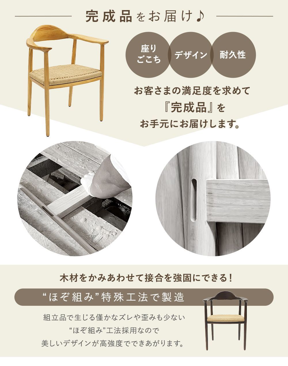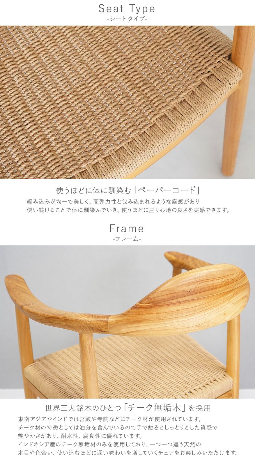 〈共通〉チークウッド[無垢材](本体)、PP[ポリプロピレン](脚裏)