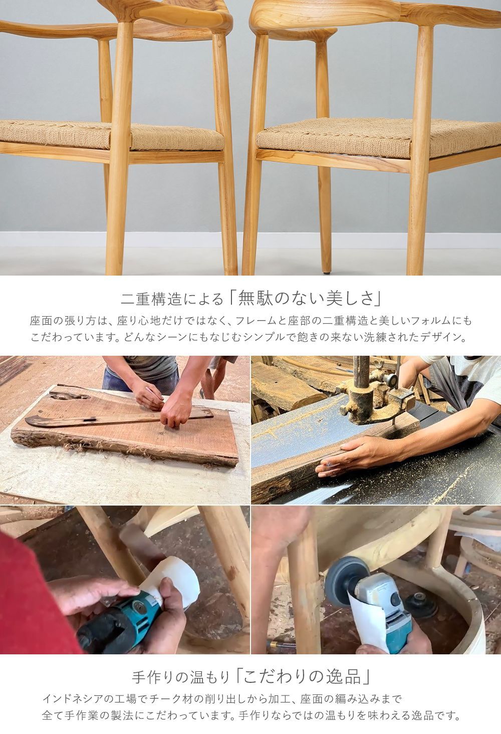 ●チーク材には油分を含んでいるので手で触るとしっとりとした質感で艶やかさがあり、耐水性、腐食性に優れています。