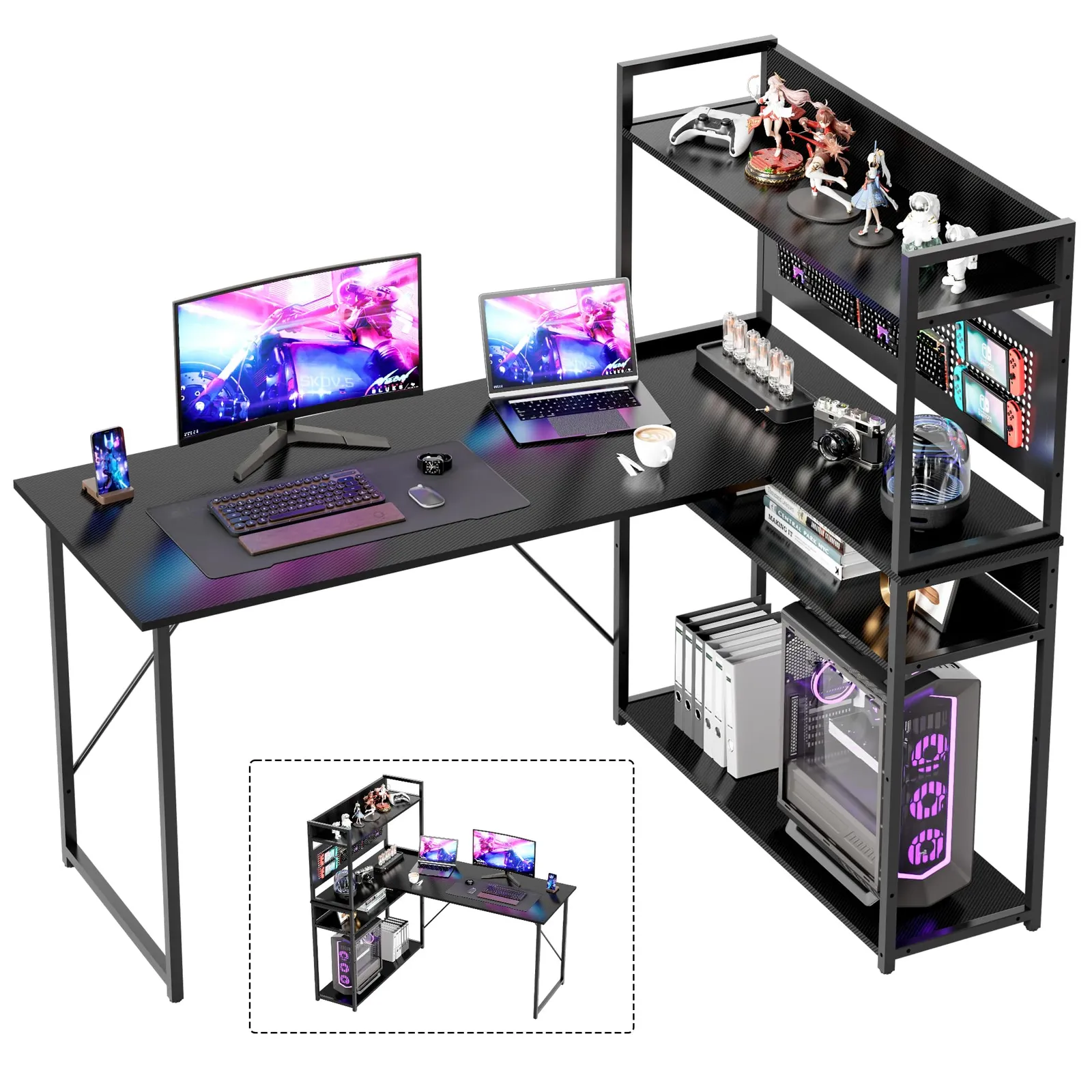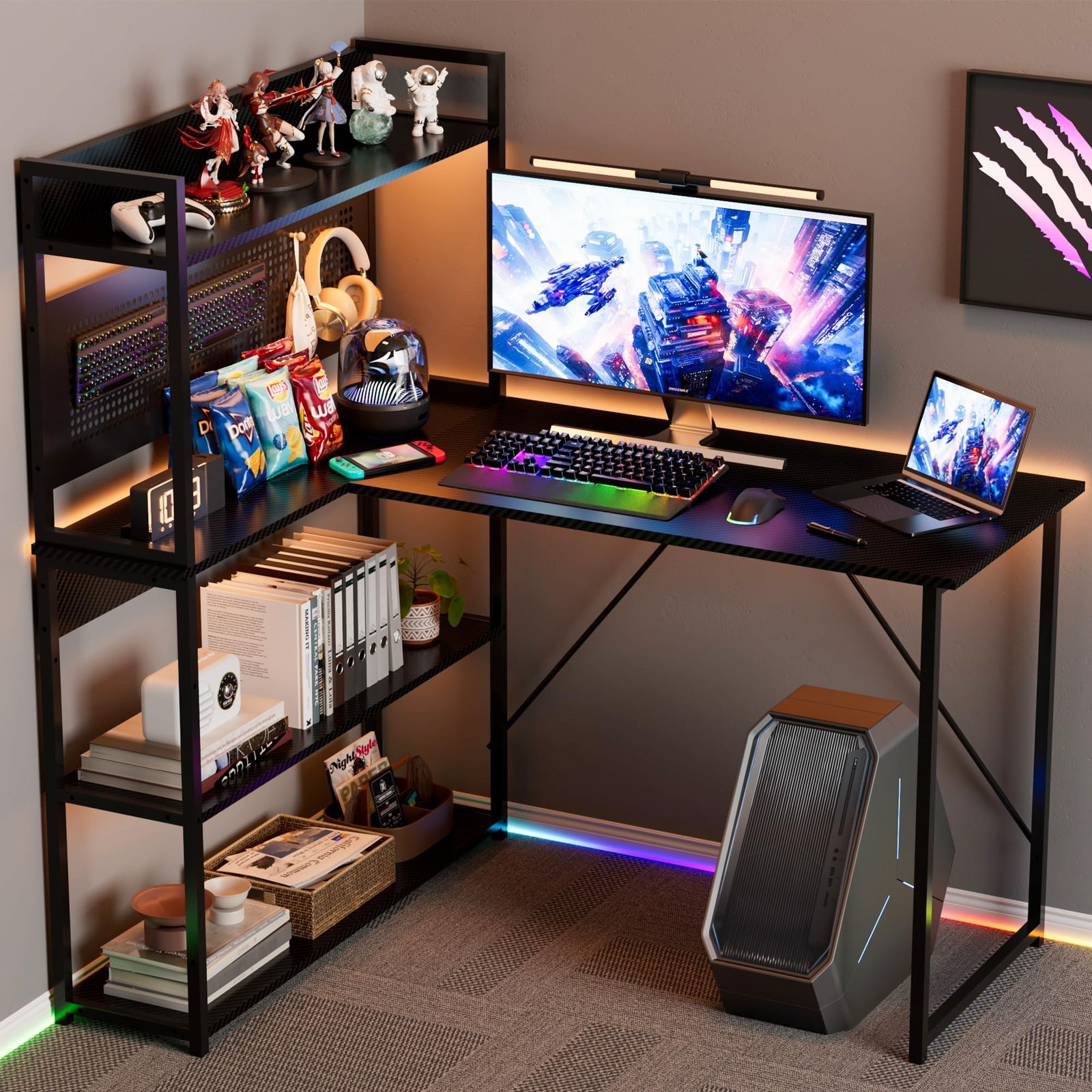 「より大きい、より安い」Alebertのラック付きL字デスクは、幅120*90cmのサイズと大容量四段階収納ラックで、お客様のためにコスパを最大限度に高める。上部空間も無駄をなし、収納ラックはなんと高さ約130cmまでになる。お客様が買得品をご購入できるのために、弊店はますます努力します!