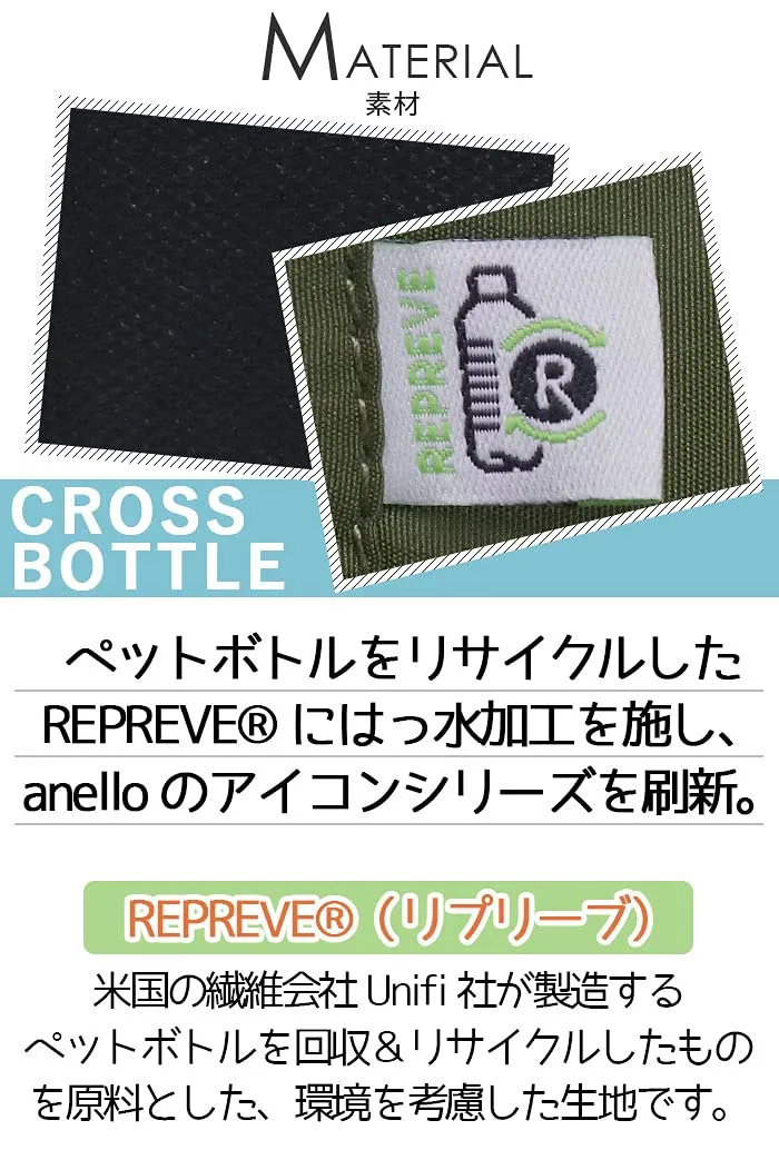 ペットボトルをリサイクルしたREPREVEにはっ水加工を施し、anelloのアイコンシリーズを刷新。さらに、本革スエードの仕様をやめてエコスエードを採用しました。機能面も、より使いやすくグレードアップしました。キャリーオンとセキュリティポケットを追加。