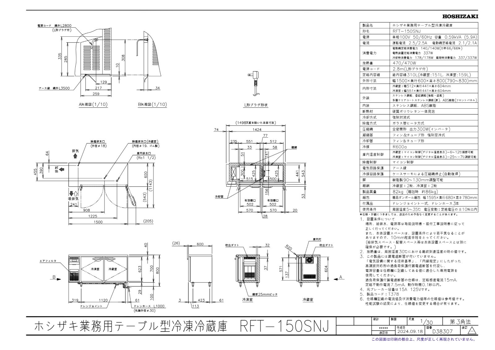 定格内容積 [冷蔵室] 151 L [冷凍室] 159 L