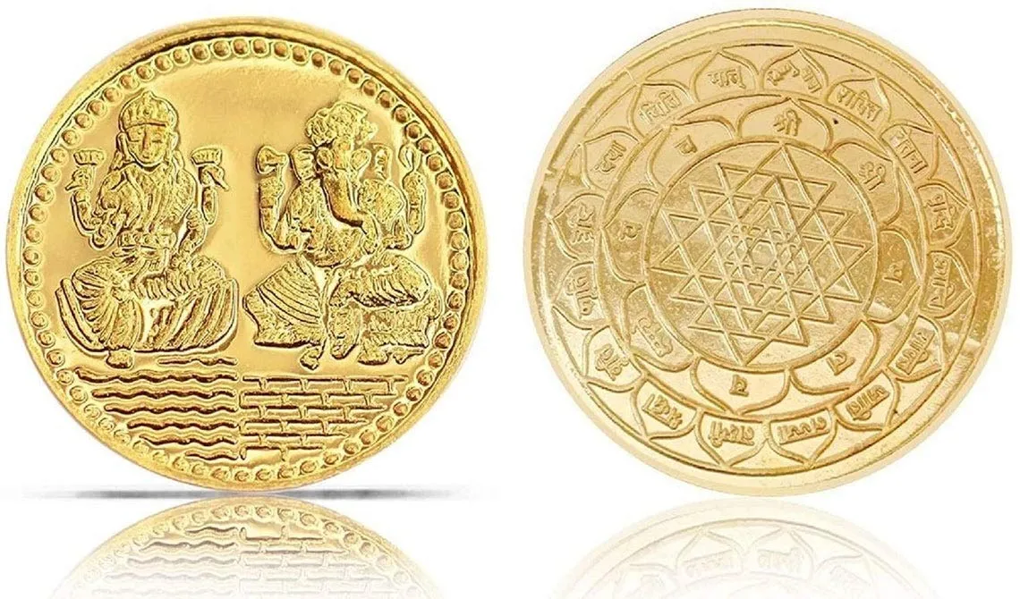 Material: Mixed Metal with Gold Plated, Laxmi Ganesh Statue Coin Diwali Dipawali Gift Puja.