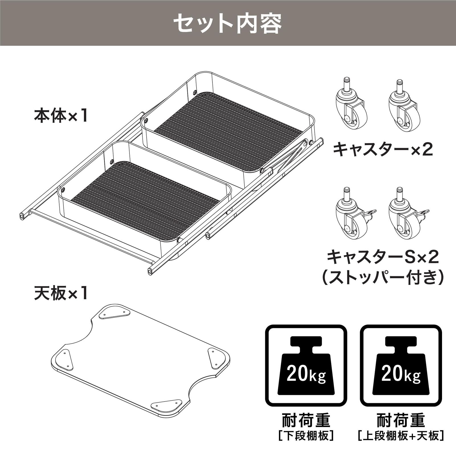 耐荷重:[下段棚板]20kg、[上段棚板+天板]20kg