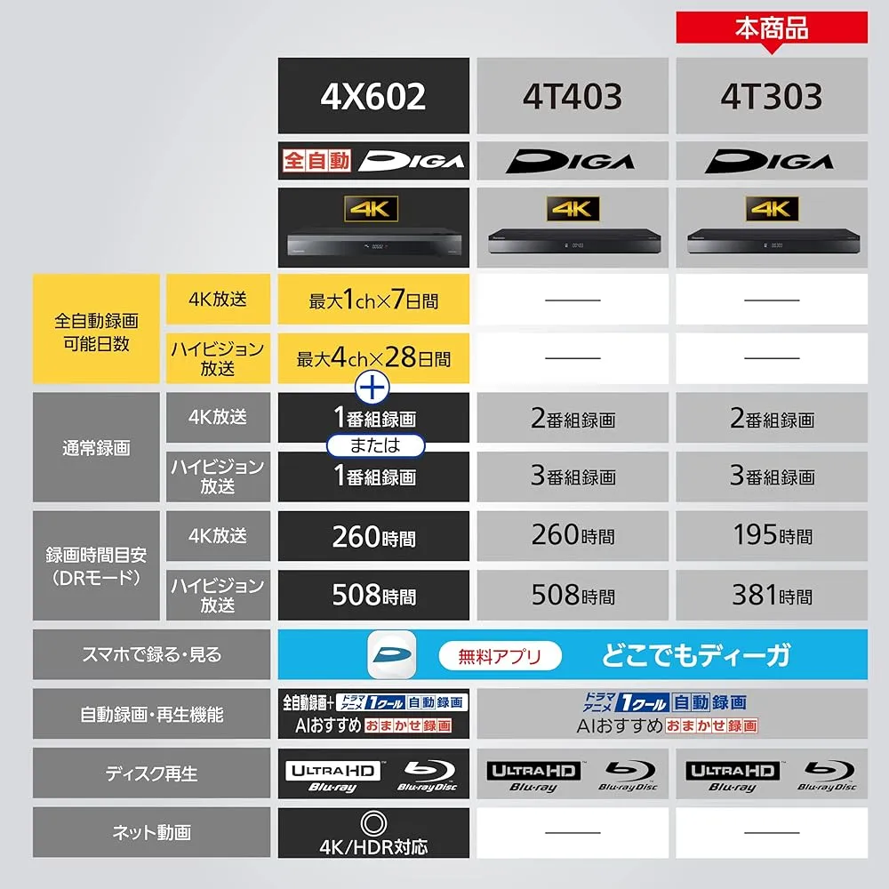【30日保証/新品/即納】パナソニック 3TB 3チューナー ブルーレイレコーダー 3チャンネル同時録画 4Kチューナー内蔵 DIGA DMR-4T303