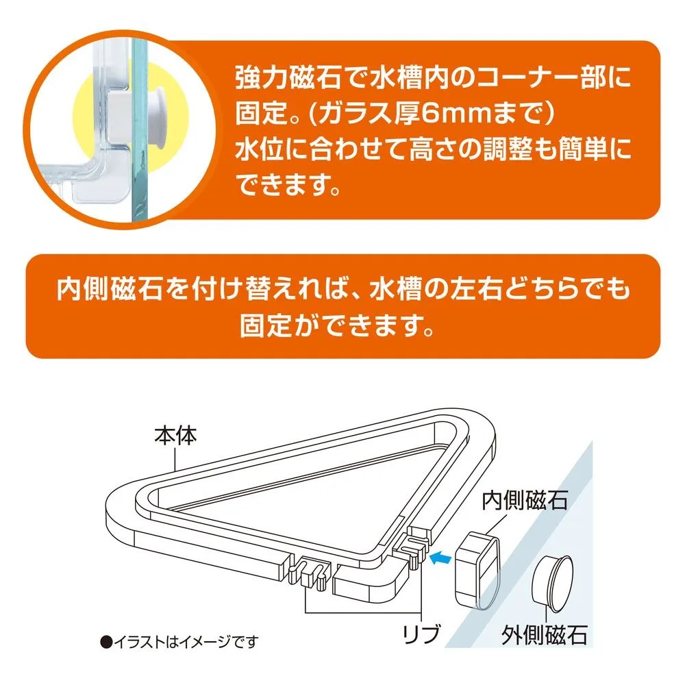 毎日のエサやりが楽しくなる!強力磁石で水槽のコーナーにしっかり固定!水流でフードが広がらないので食べ残しを減らし、水汚れを抑えます。